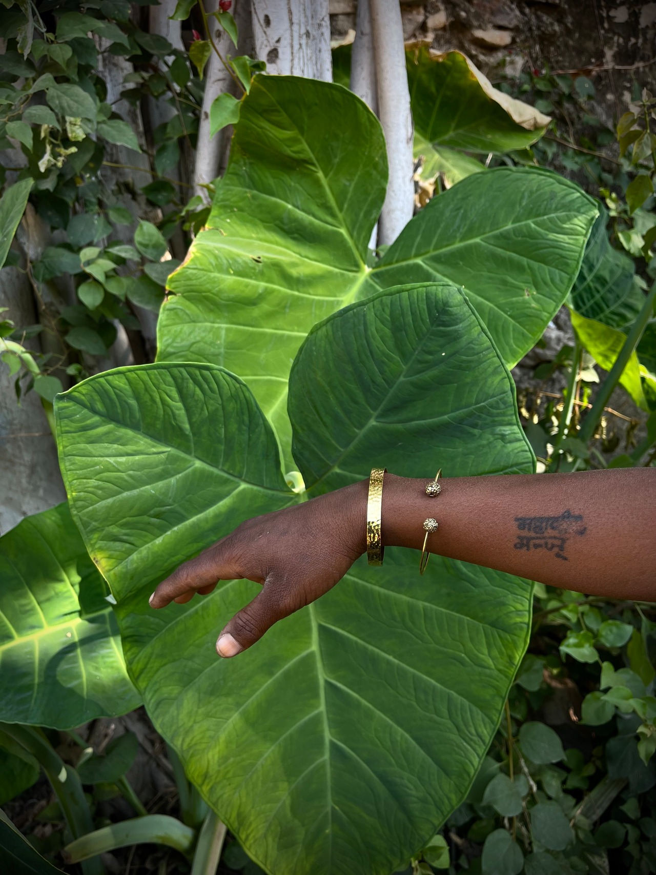 程よい太さの真鍮バングル。