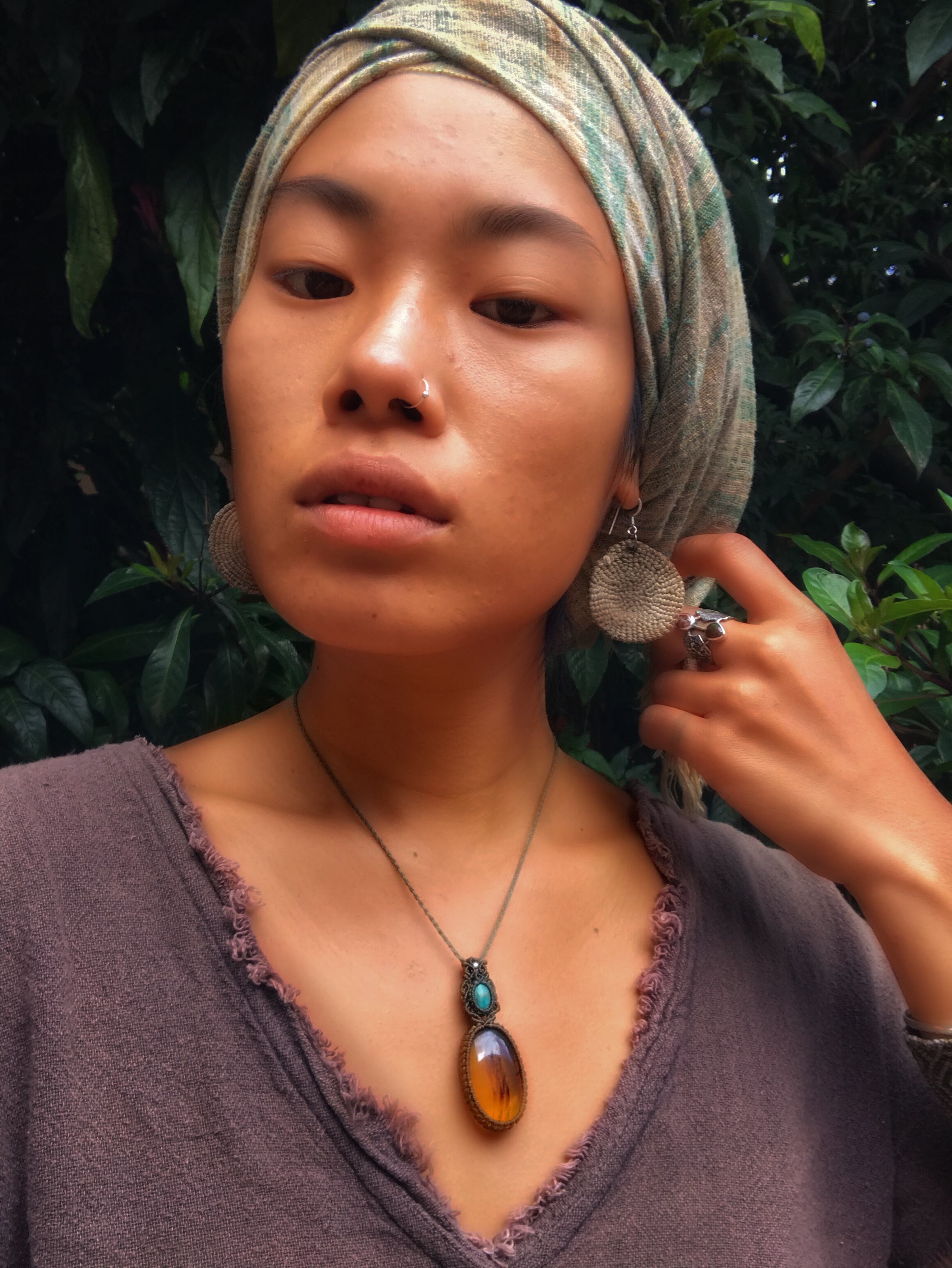 Amber&Chrysocolla-アンバー/琥珀 & クリソコラ- ペンダント