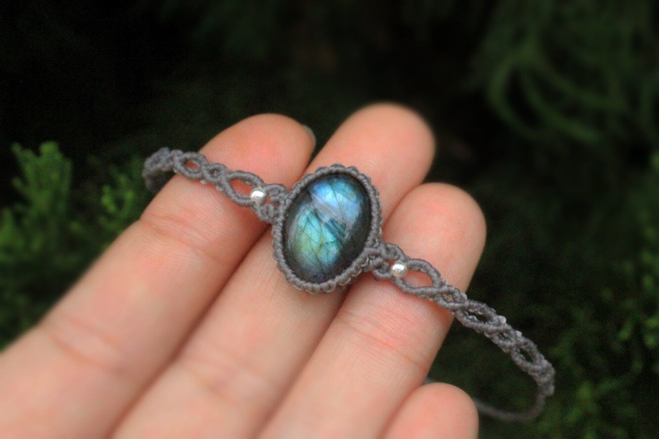 ラブラドライトのマクラメ シンプルデザインブレスレット。