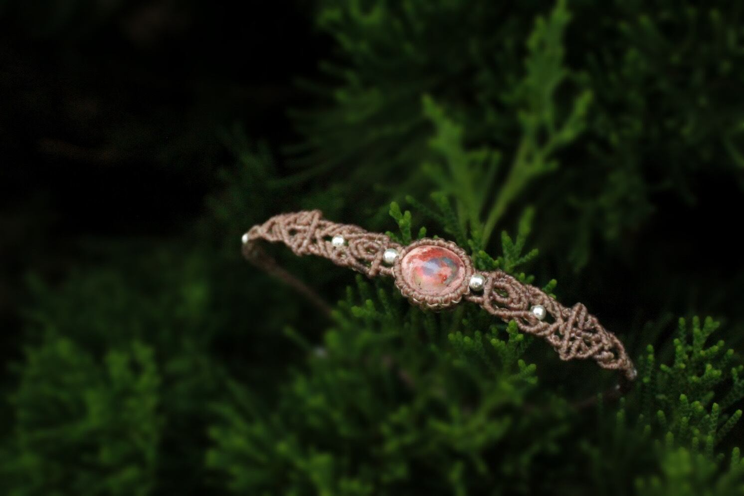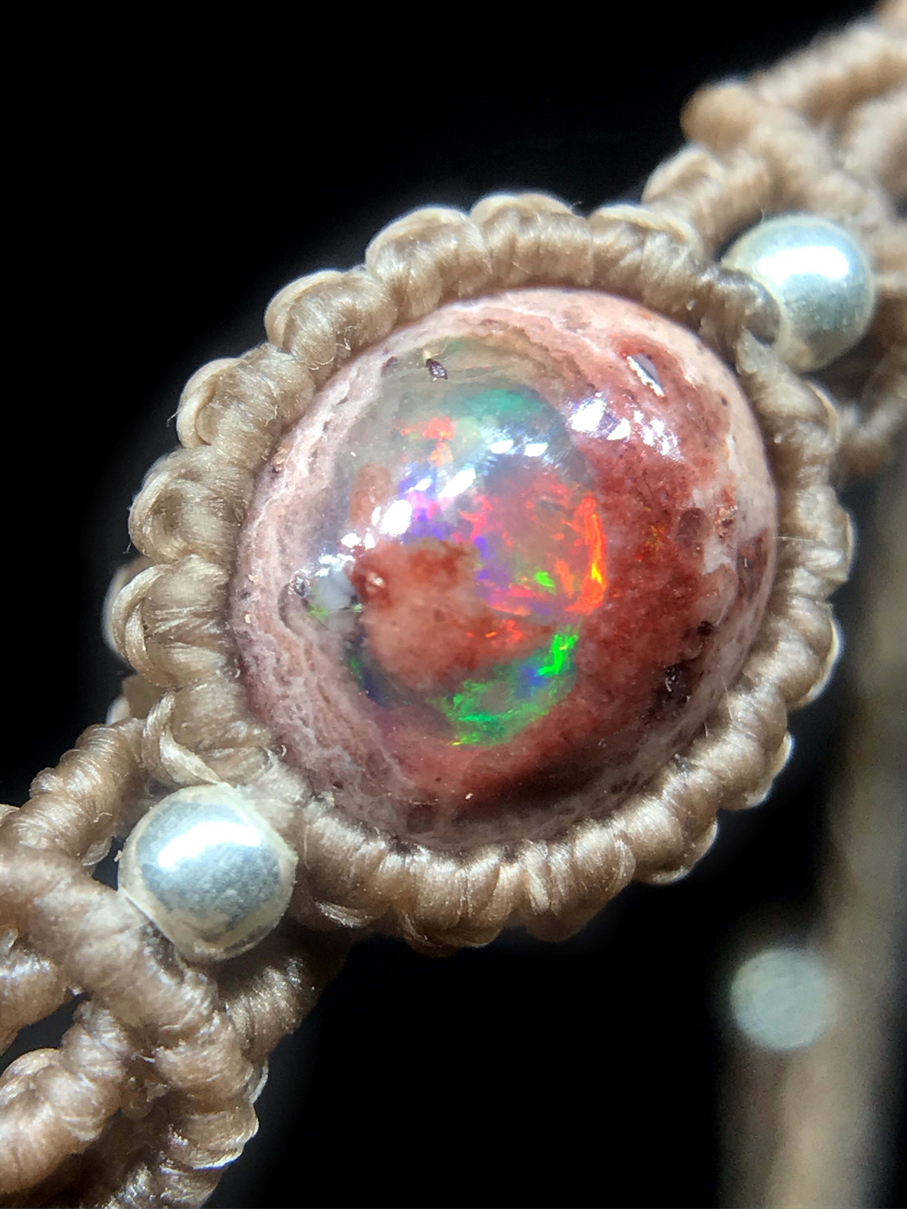 メキシコ産のカンテラオパール、マクラメデザインブレスレット。