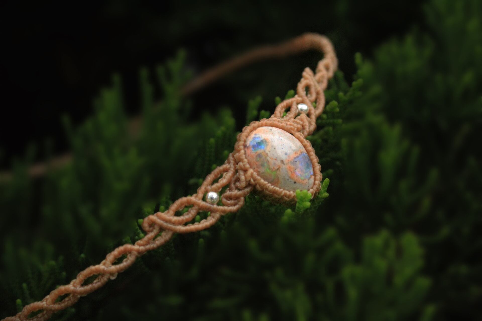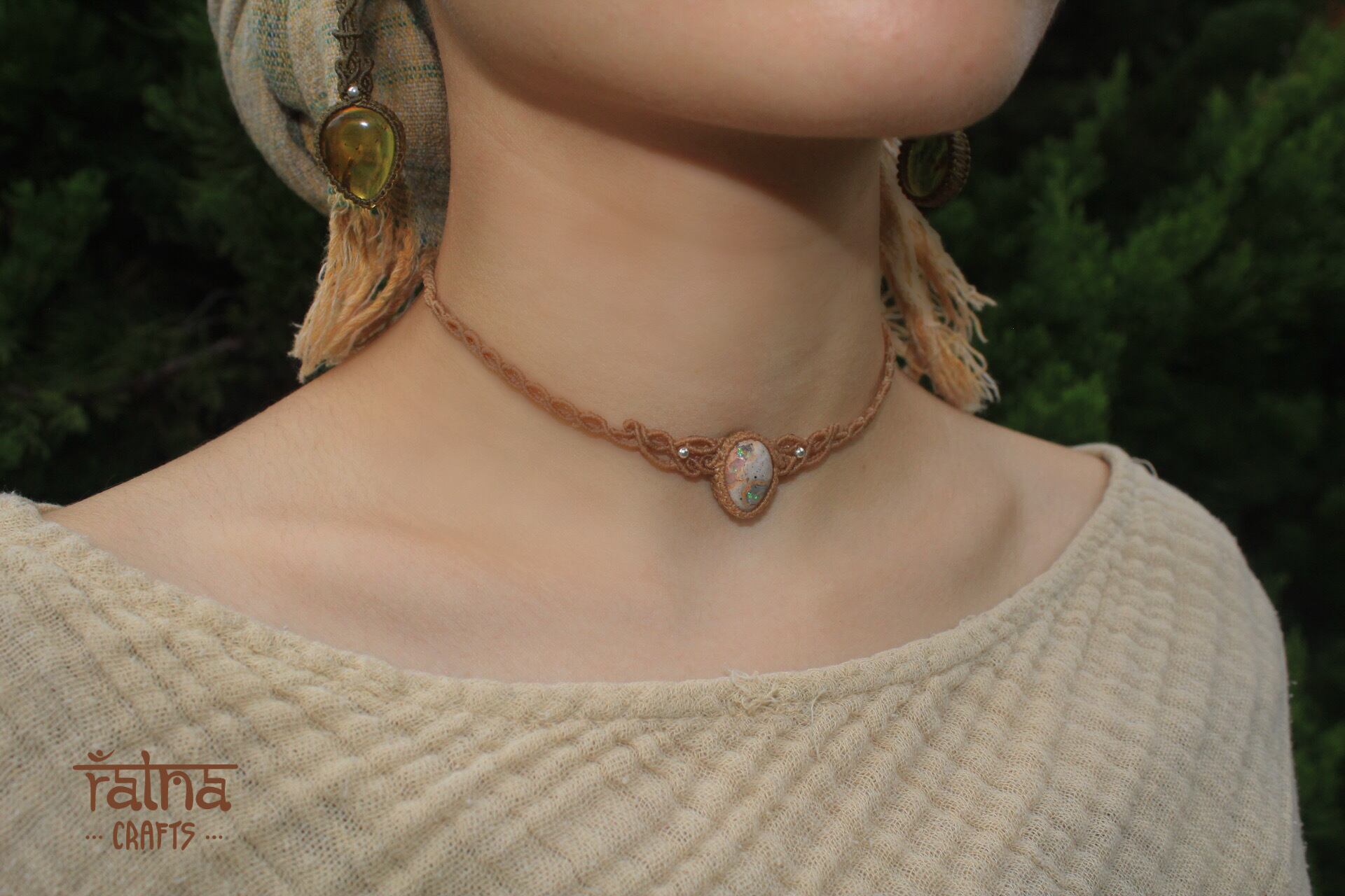 新作のメキシコ産カンテラオパール、チョーカーネックレス兼ヘッドアクセサリー。帽子につけてもすごくかわいいです。
