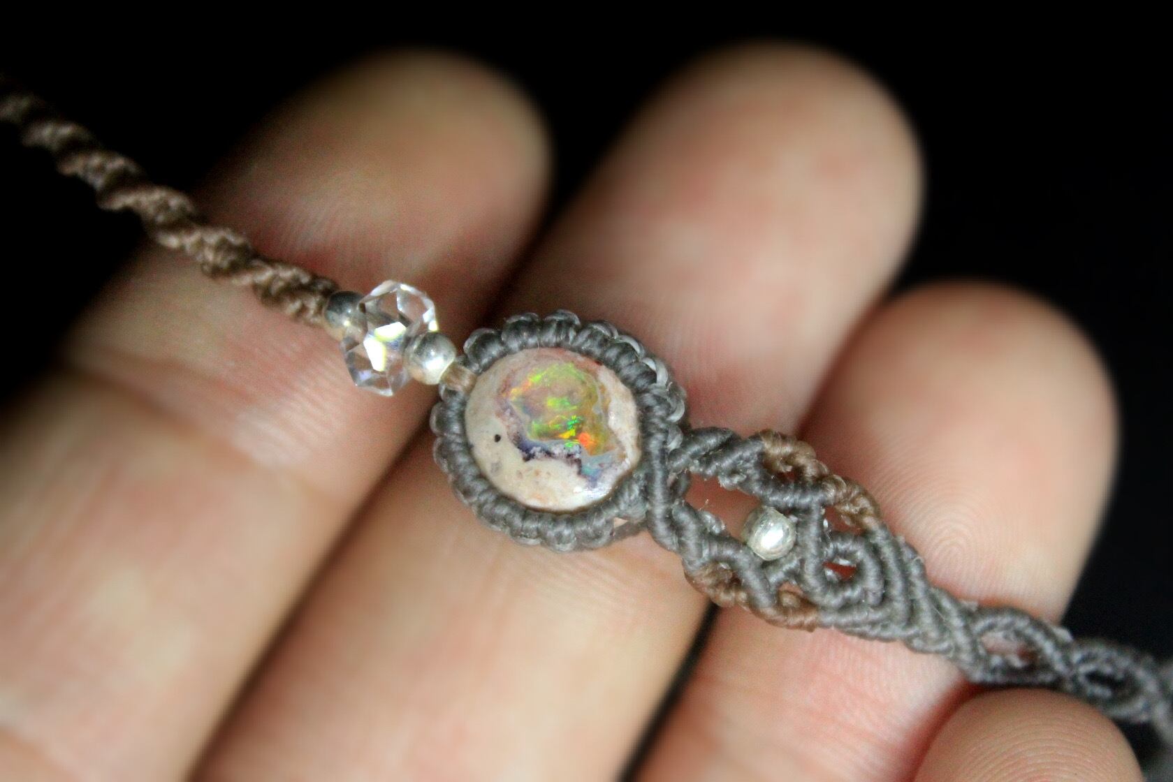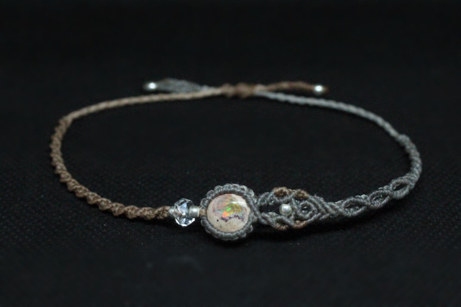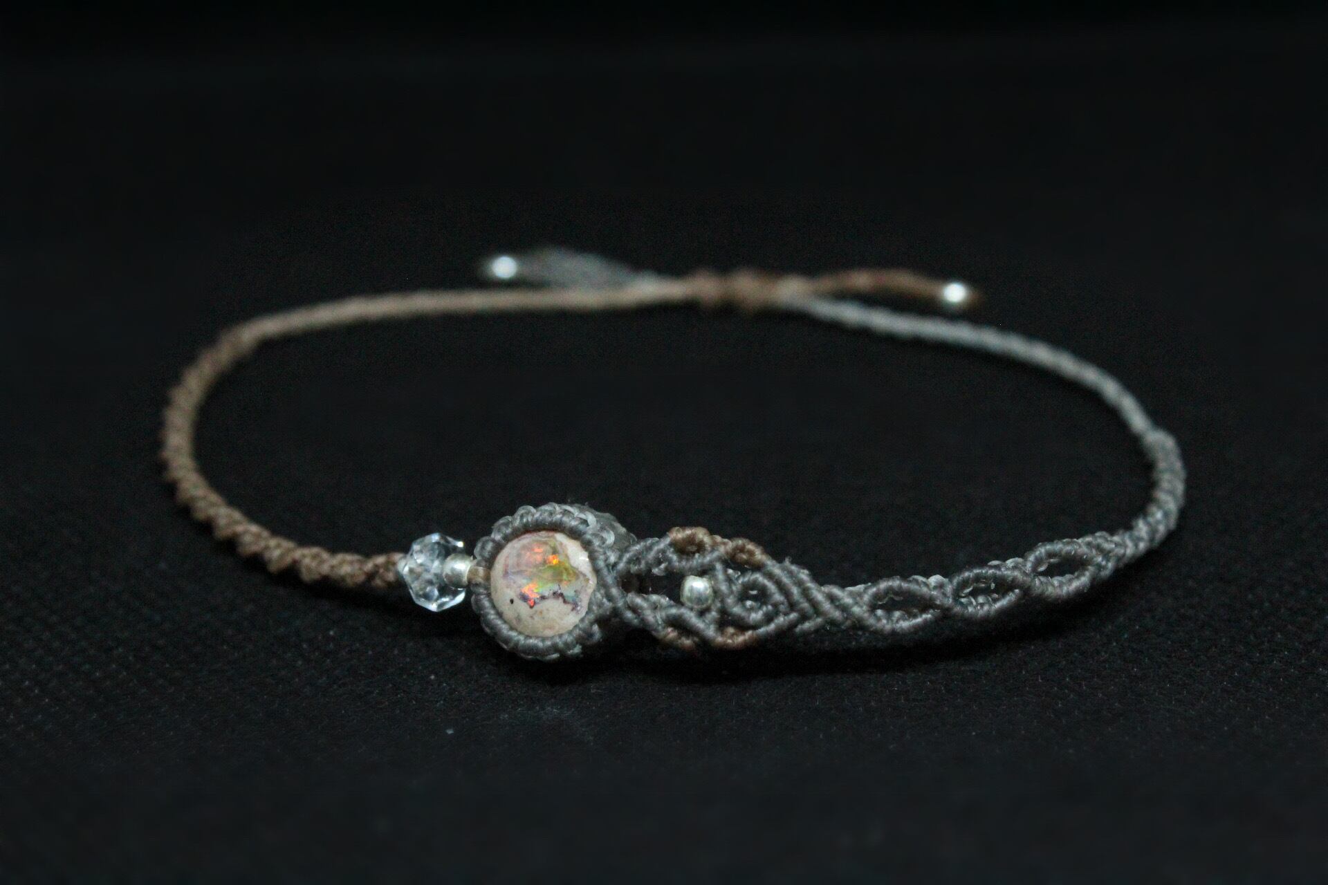 メキシコ産カンテラオパールを扱ったマクラメ アシンメトリー デザイン ブレスレット。