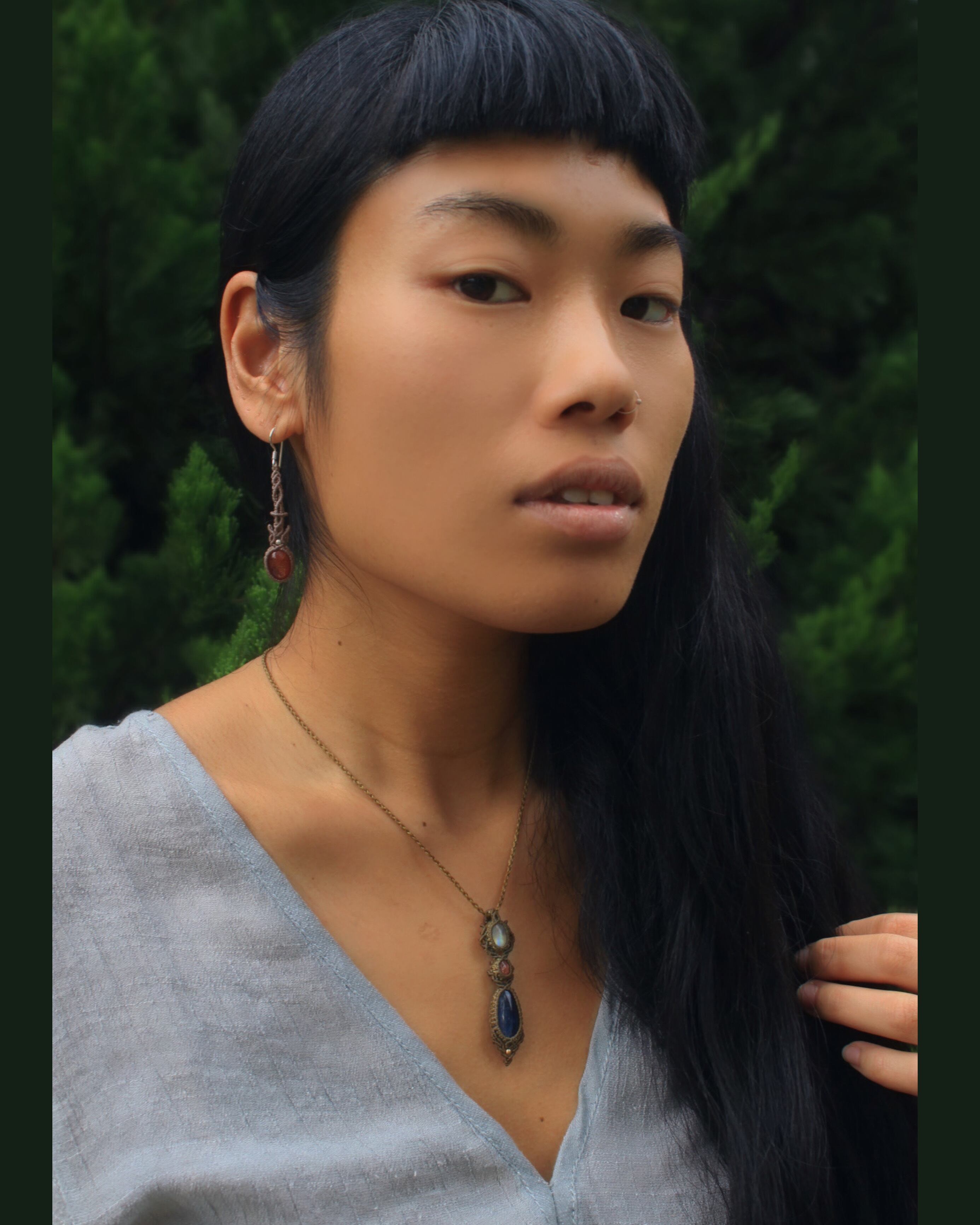 小さなムーンストーンとサンストーンとの組み合わせで、より一層神秘的な色合い、且つ存在感溢れるデザインに仕上げました。
