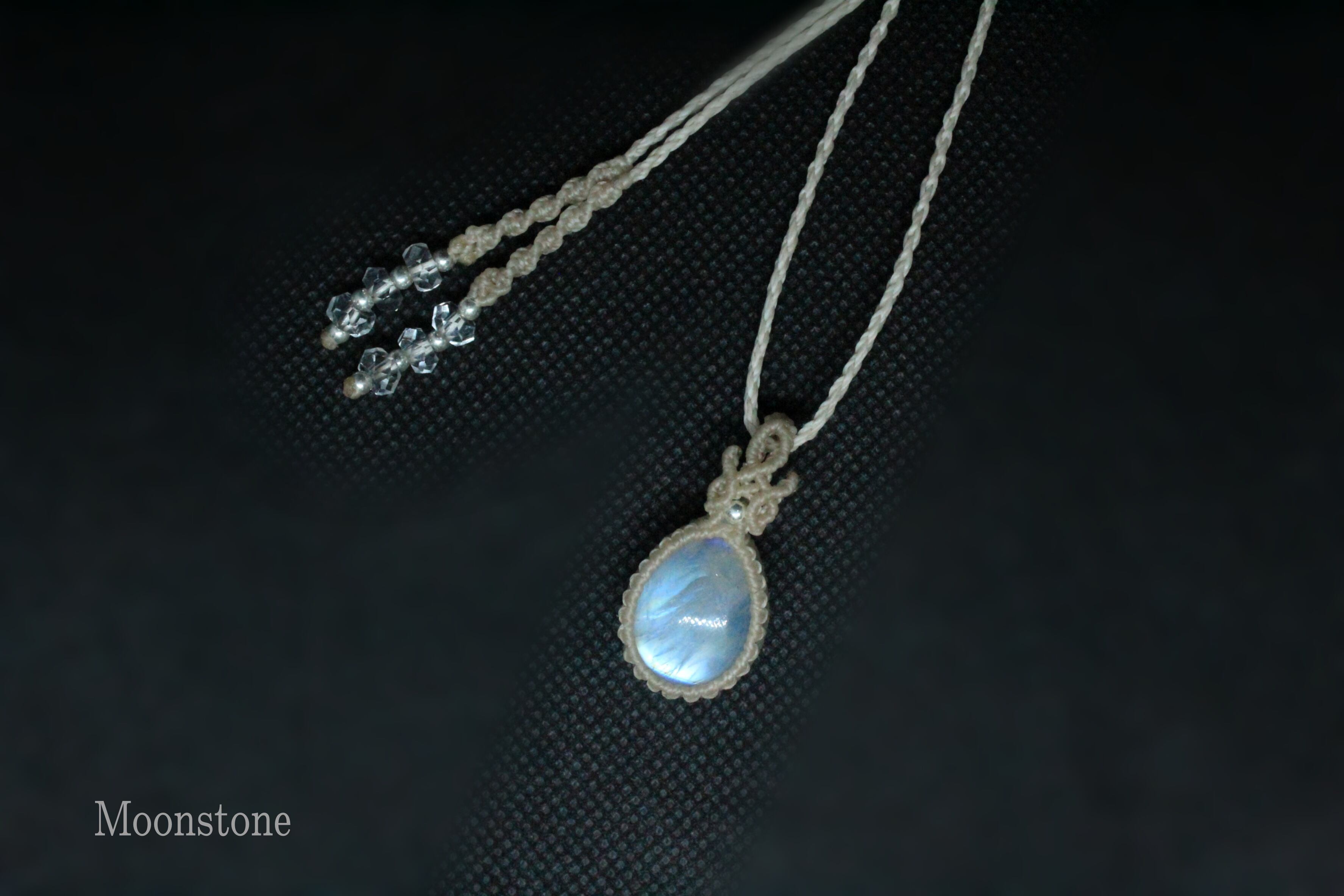 雪の結晶のような上品な輝きを持つこちらのムーンストーンは、透明感があり、とても美しいです。