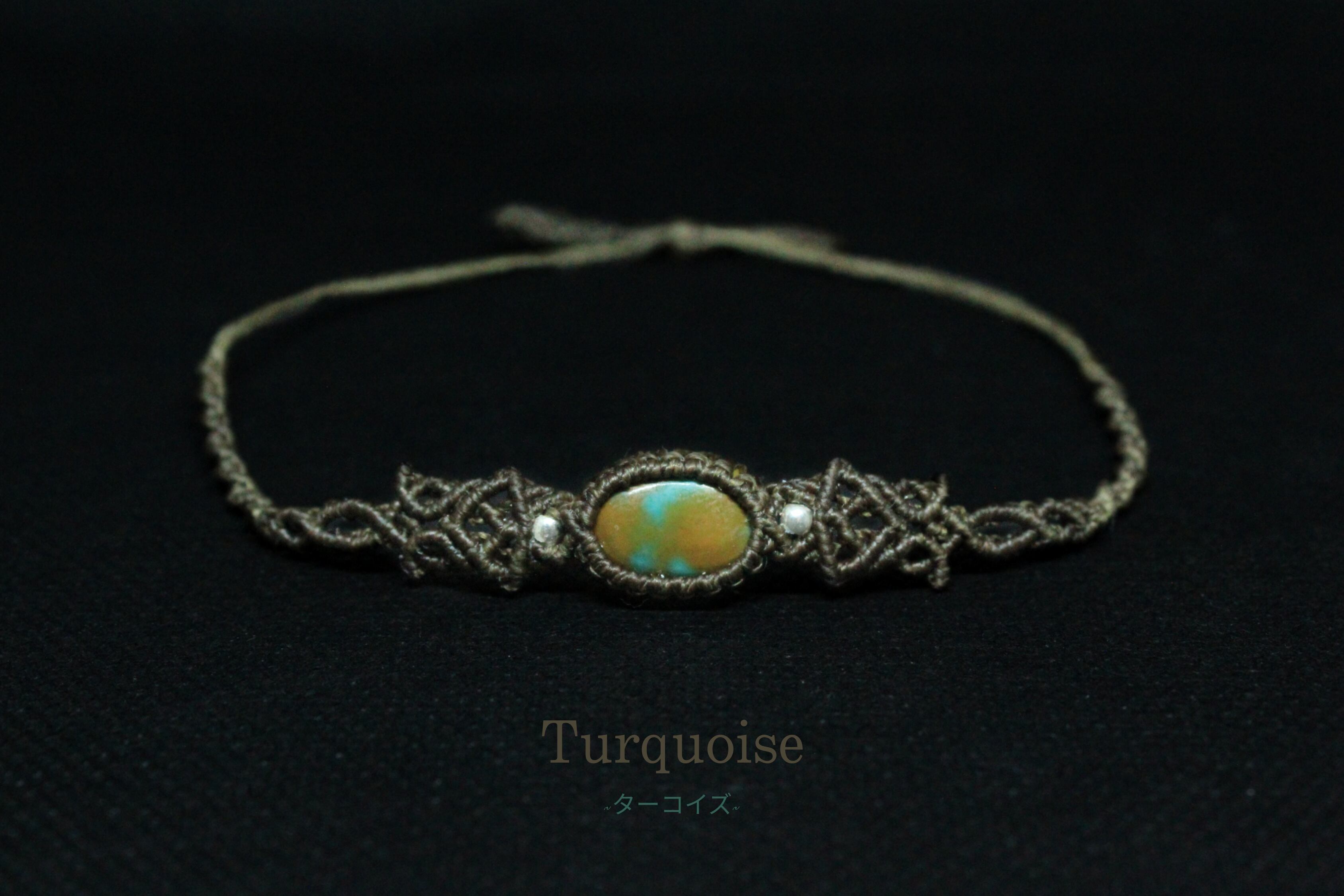 チベット産の小粒ターコイズ、デザインブレスレット。