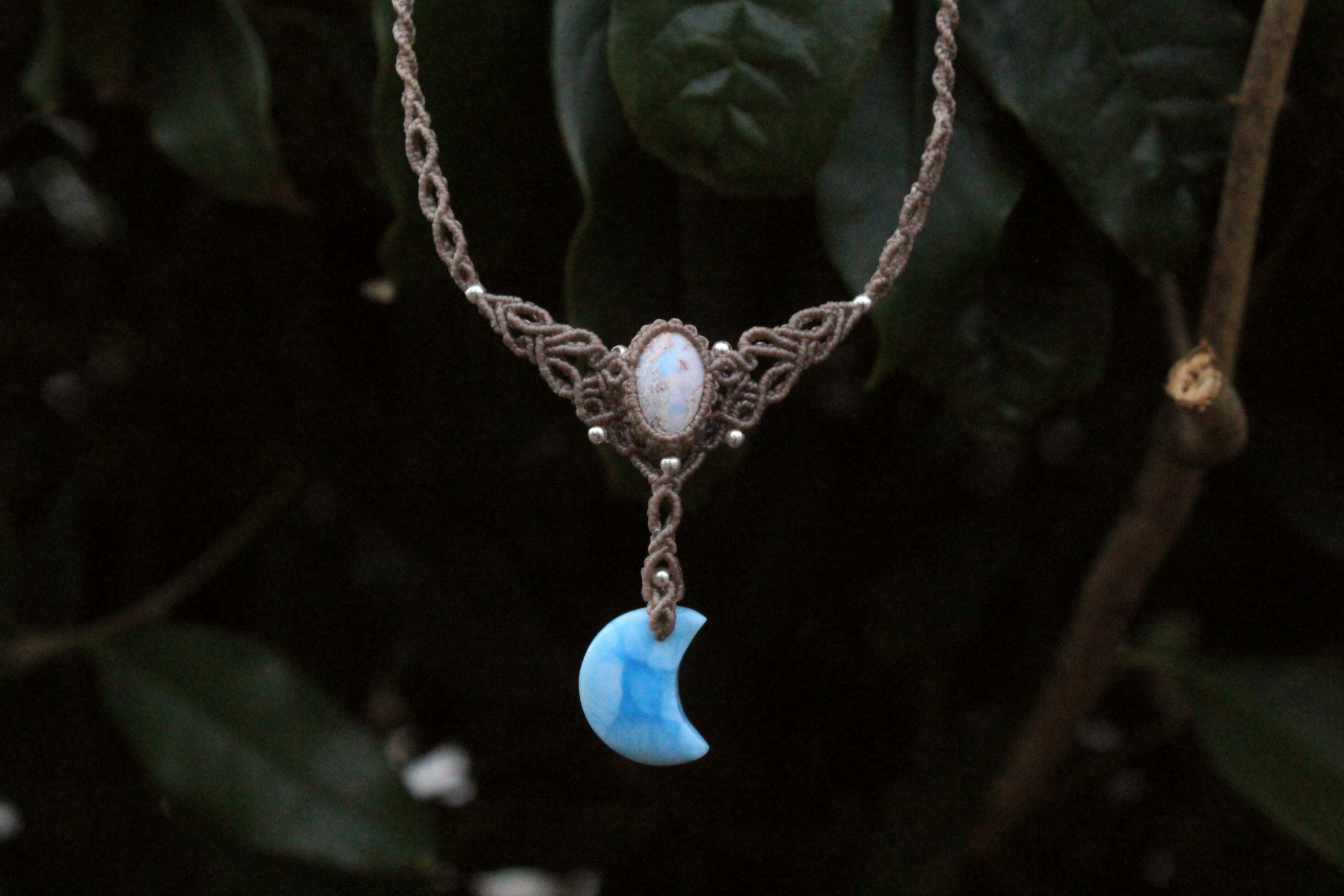 キラキラ輝く美しいカンテラオパールに月のラリマーを宿しました。