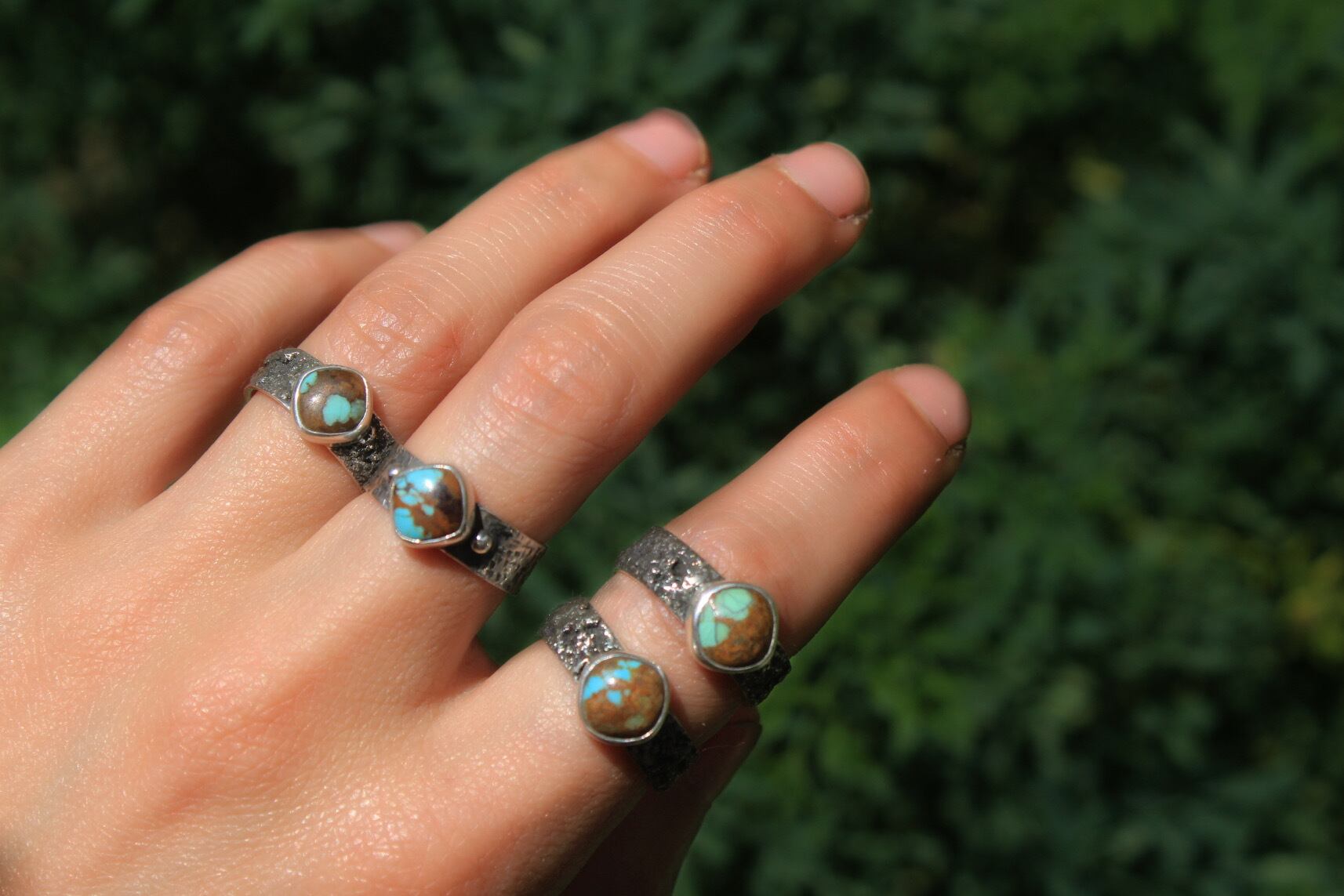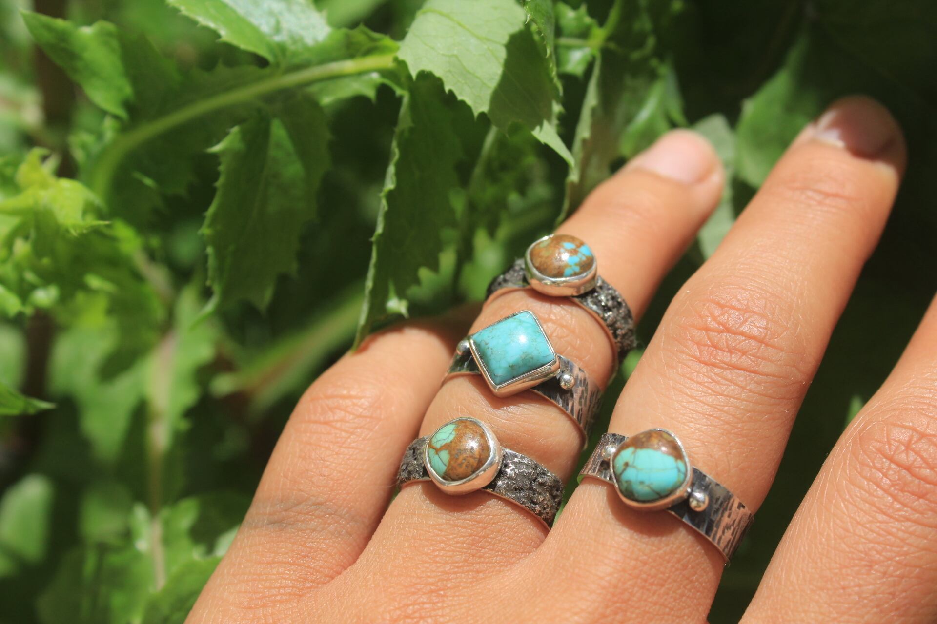 こちらはメキシコ産のターコイズで製作したシンプルなデザインリング。