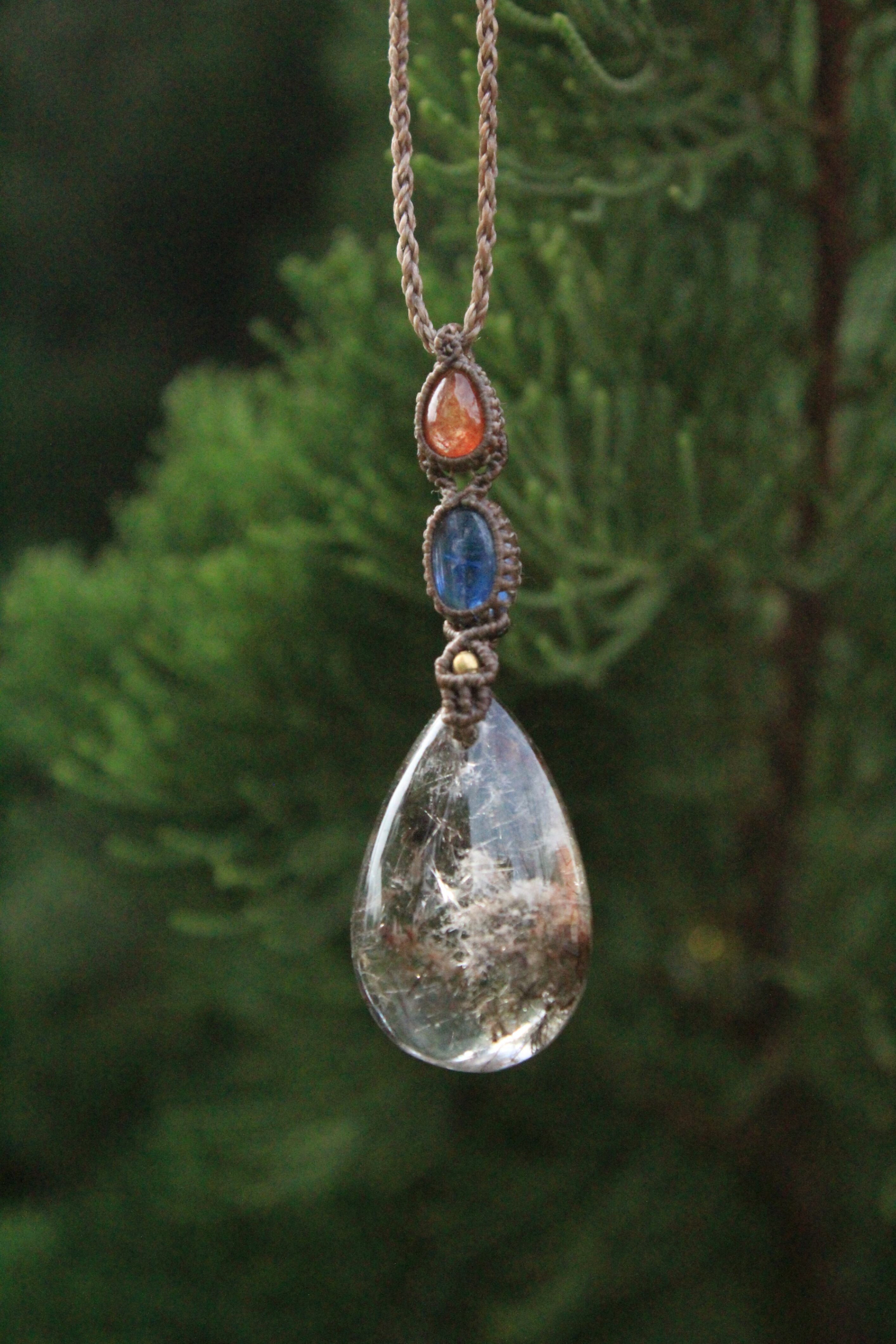 サンストーンとカイヤナイトを組み合わせて、デザインはシンプルに、存在感大のペンダントとなっております。