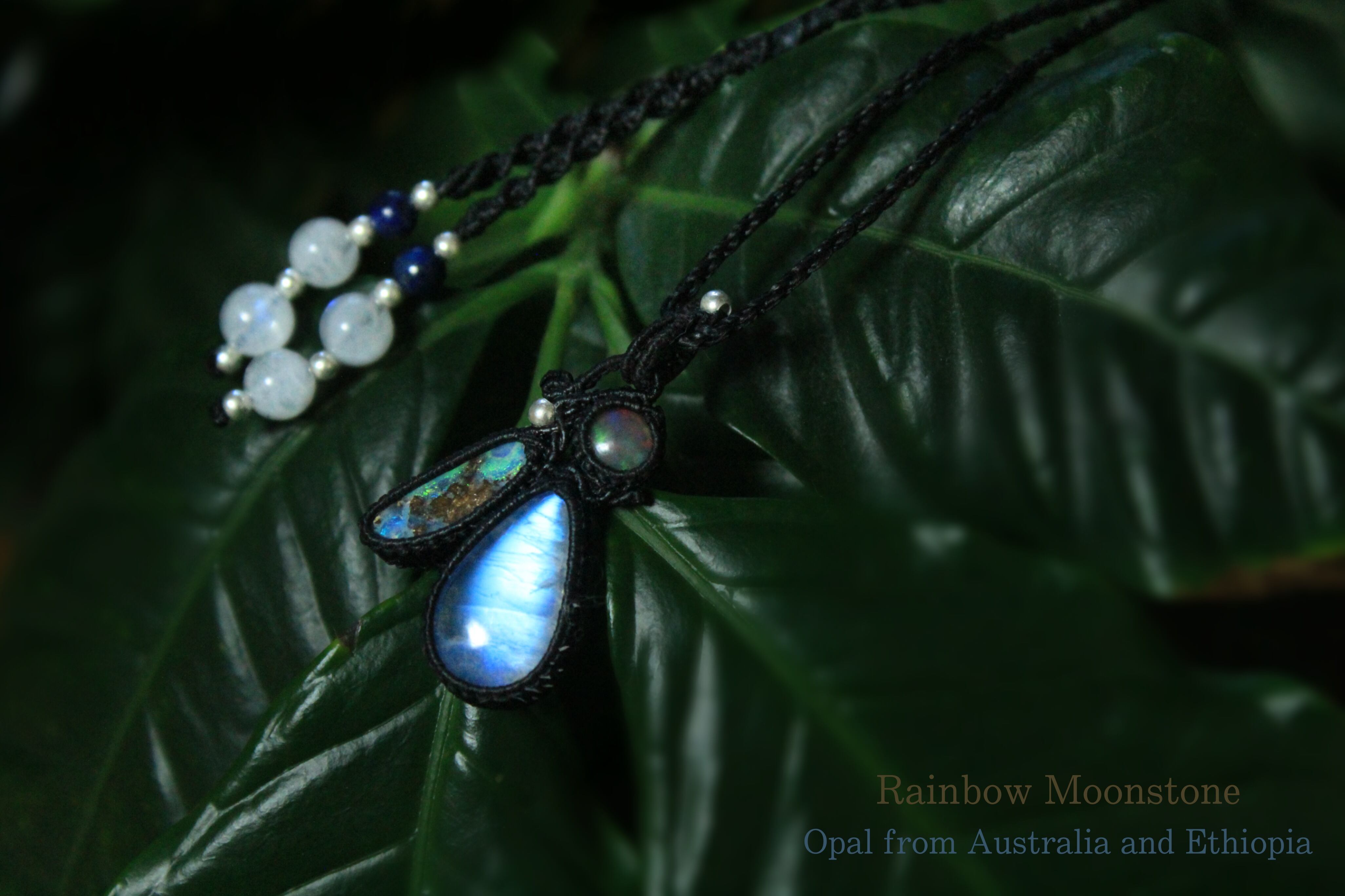 キラキラ光るオパール達と、透明感の美しいレインボームーンストーン(ホワイトラブラドライト)。