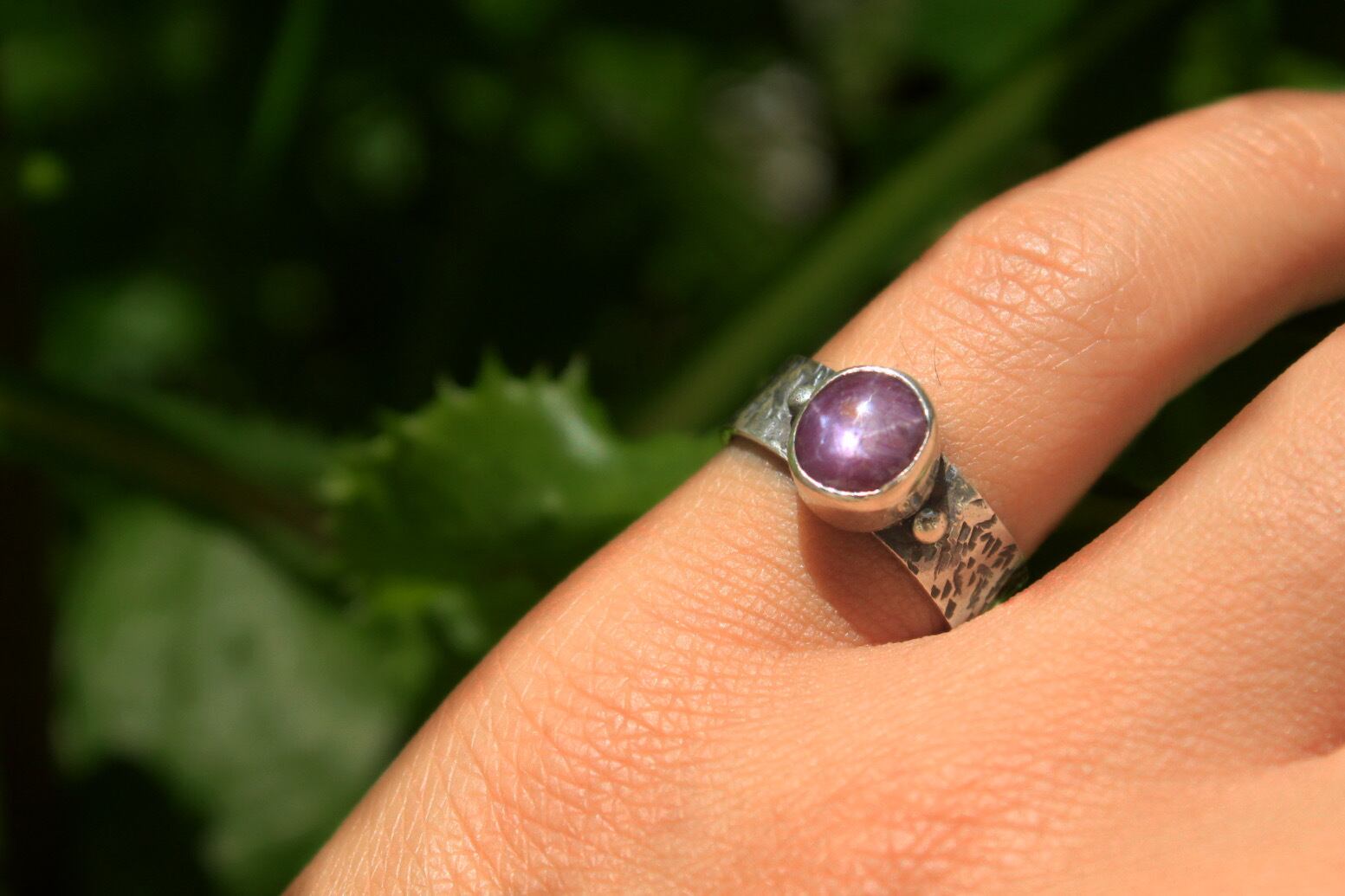 豪華なスタールビーでシンプルなオーガニックデザインリングを制作しました。