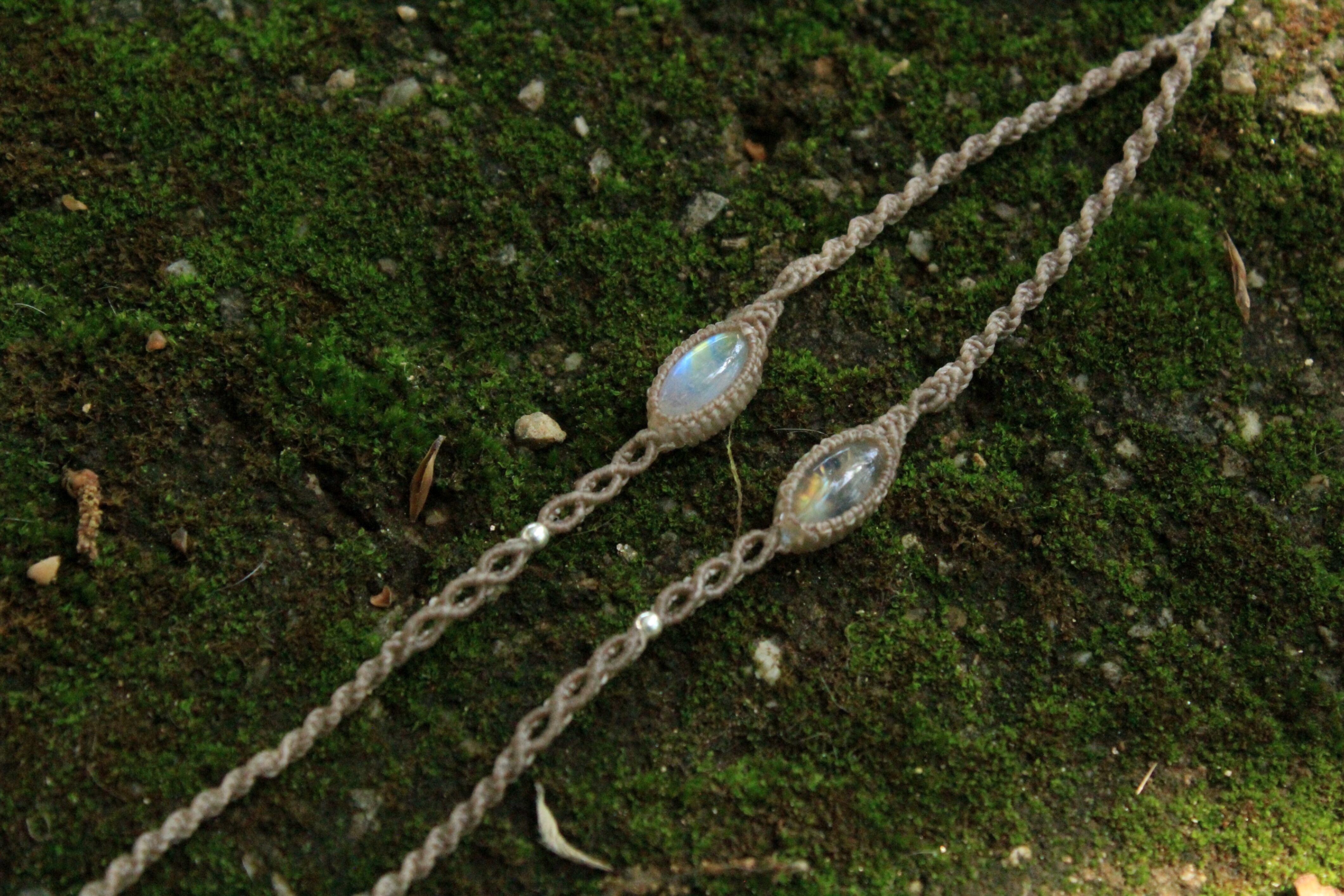 シルバー925ビーズを所々に散りばめて、美しい天然石たちが主役になるように、デザインはシンプルに丁寧に編み上げました。