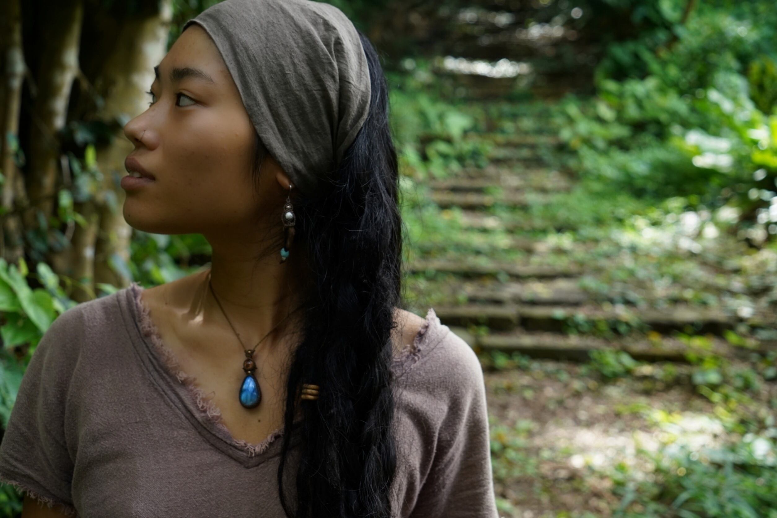 ラブラドライトとのコントラストが絶妙なバランスで、男女共に使っていただけるユニセックスデザインペンダントとなりました。
