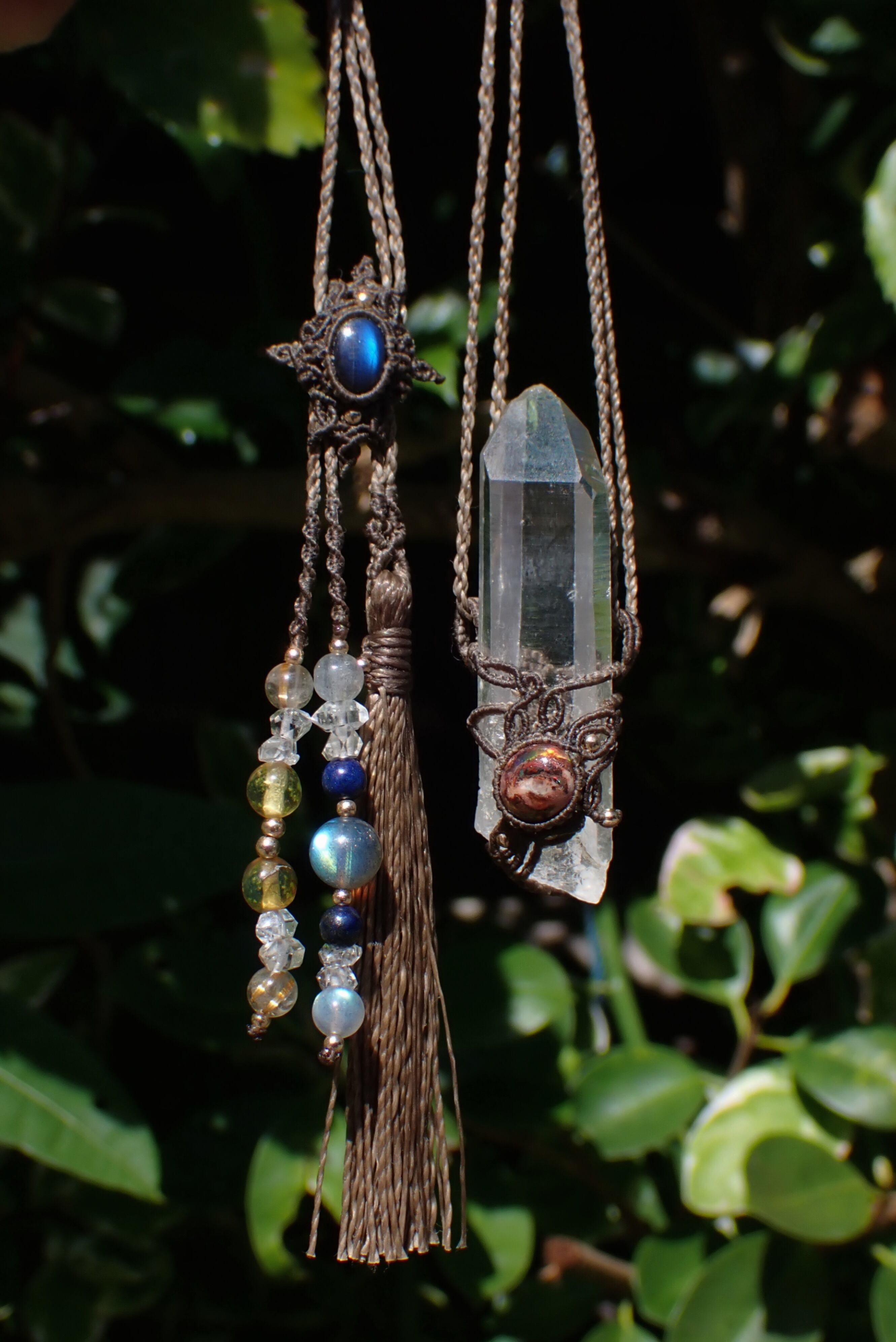 首紐後ろにもこだわり、ラブラドライトでデザインを編み、更に天然石ビーズは、ラブラドライト、ハーキマー水晶、ラピスラズリ、ルチルクォーツとアンバーを。星のように14kgfビーズを散りばめました。