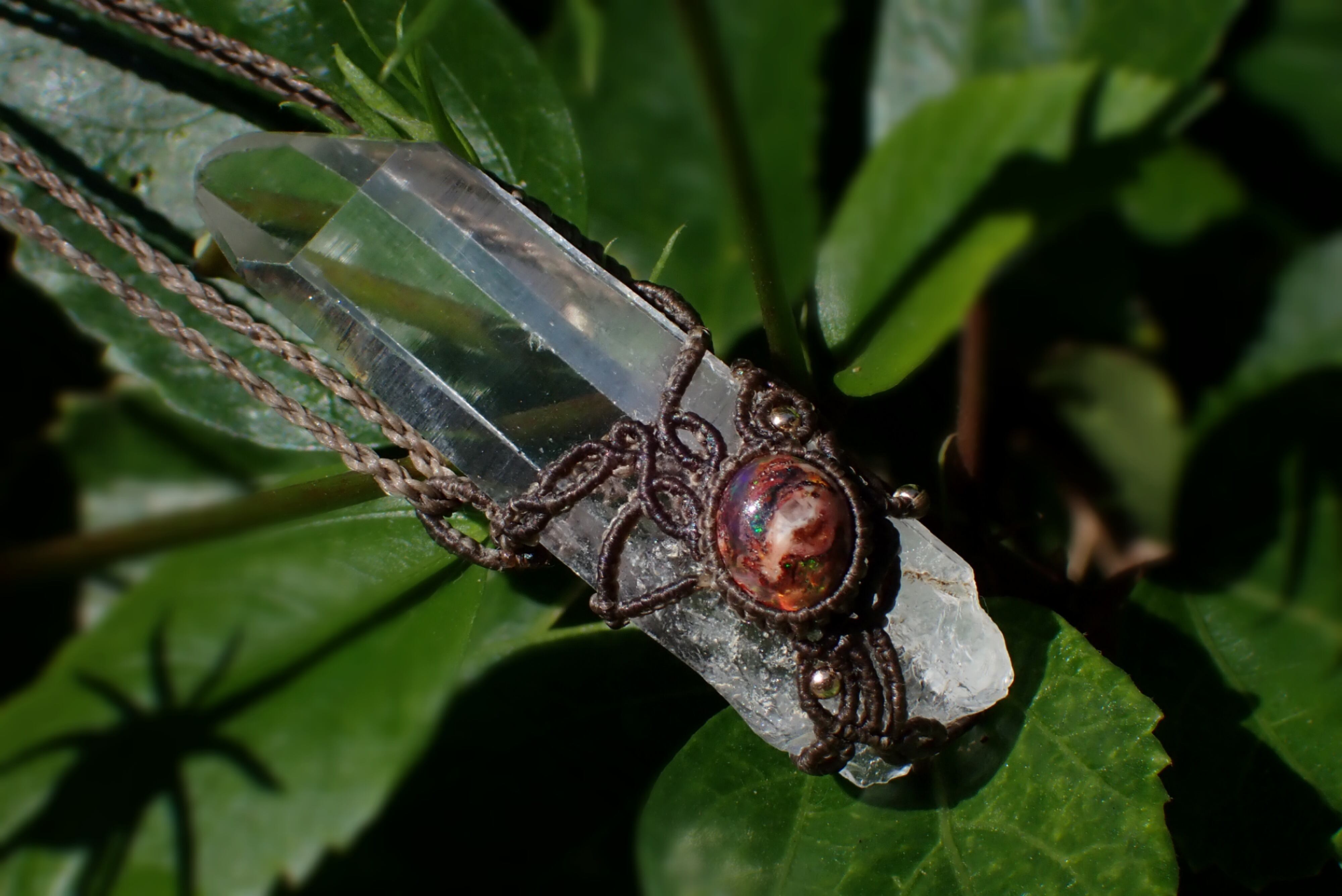ブラジル産水晶とメキシコ産カンテラオパールをペンダントトップに