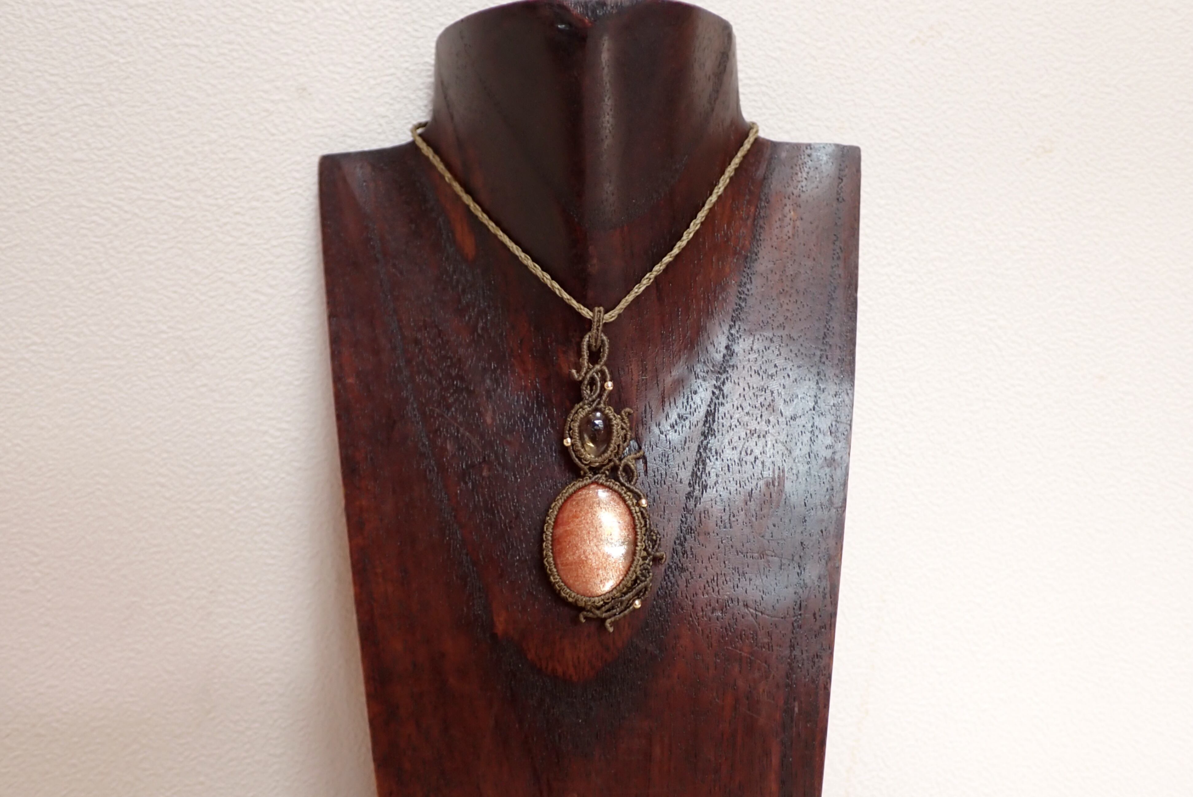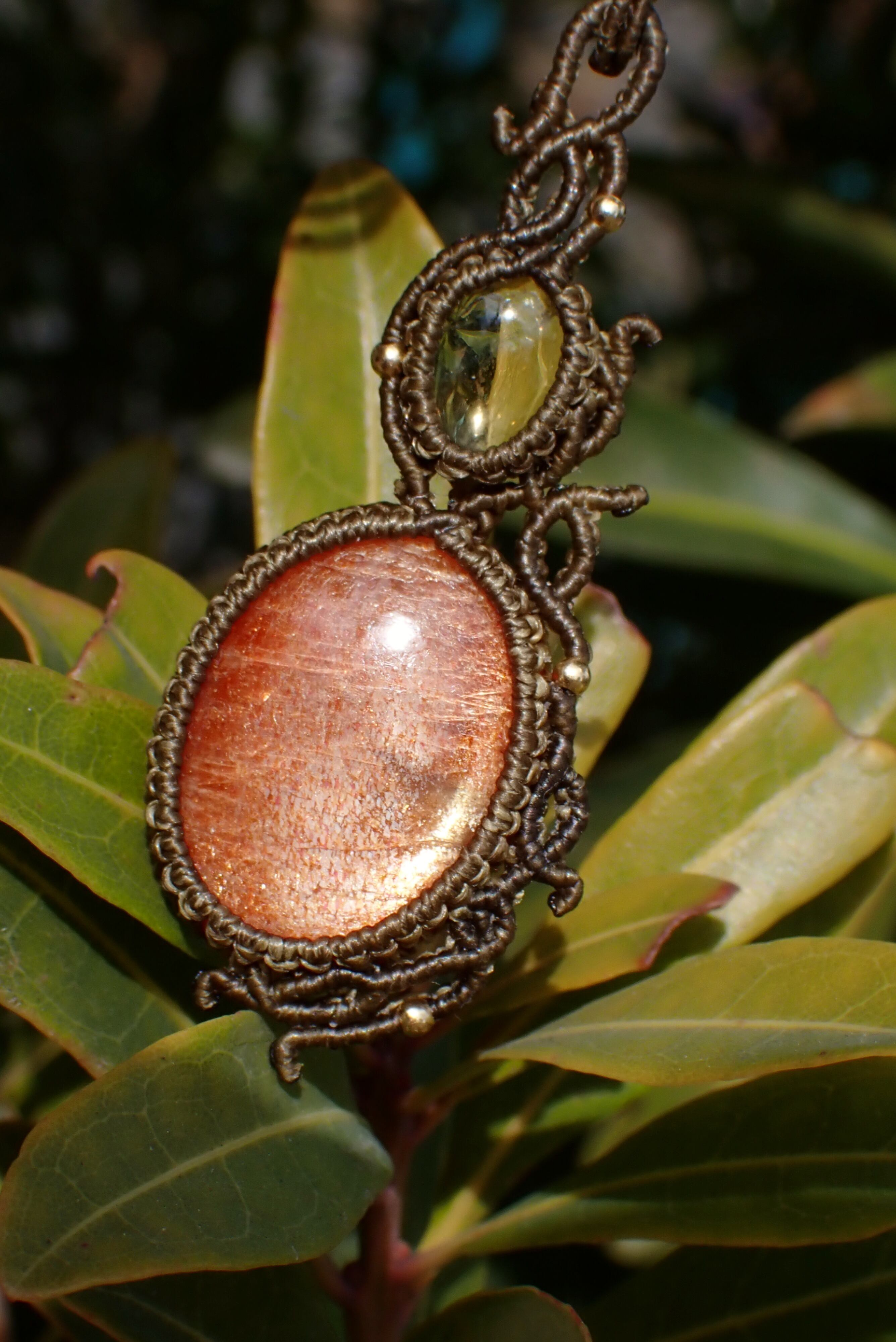 落ち着いた、暖かい輝きを持つサンストーンと、透明感のあるシトリンクォーツ。