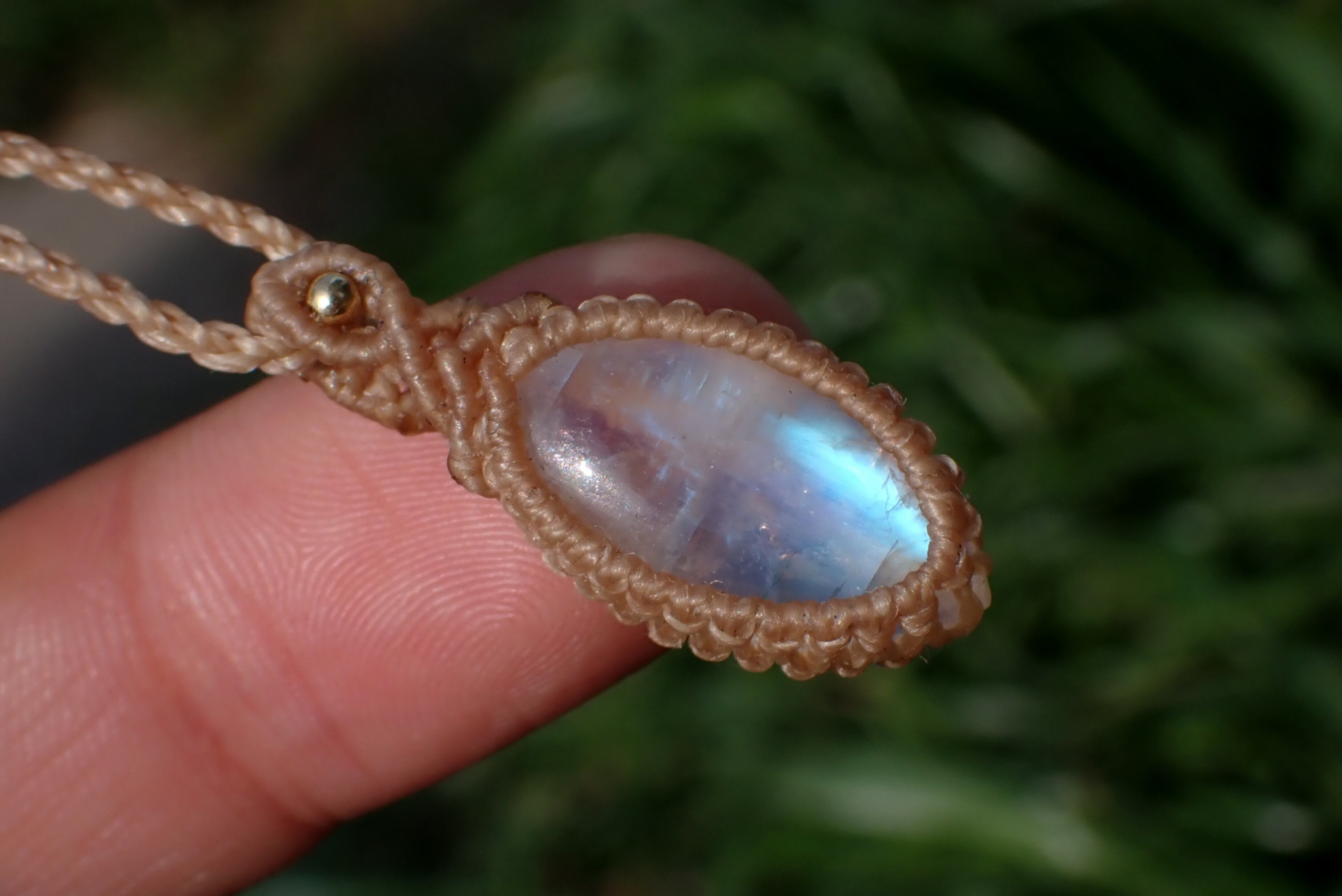 光の角度によってブルーやレインボーのシラーが見られます。とても神秘的な天然石のひとつ。