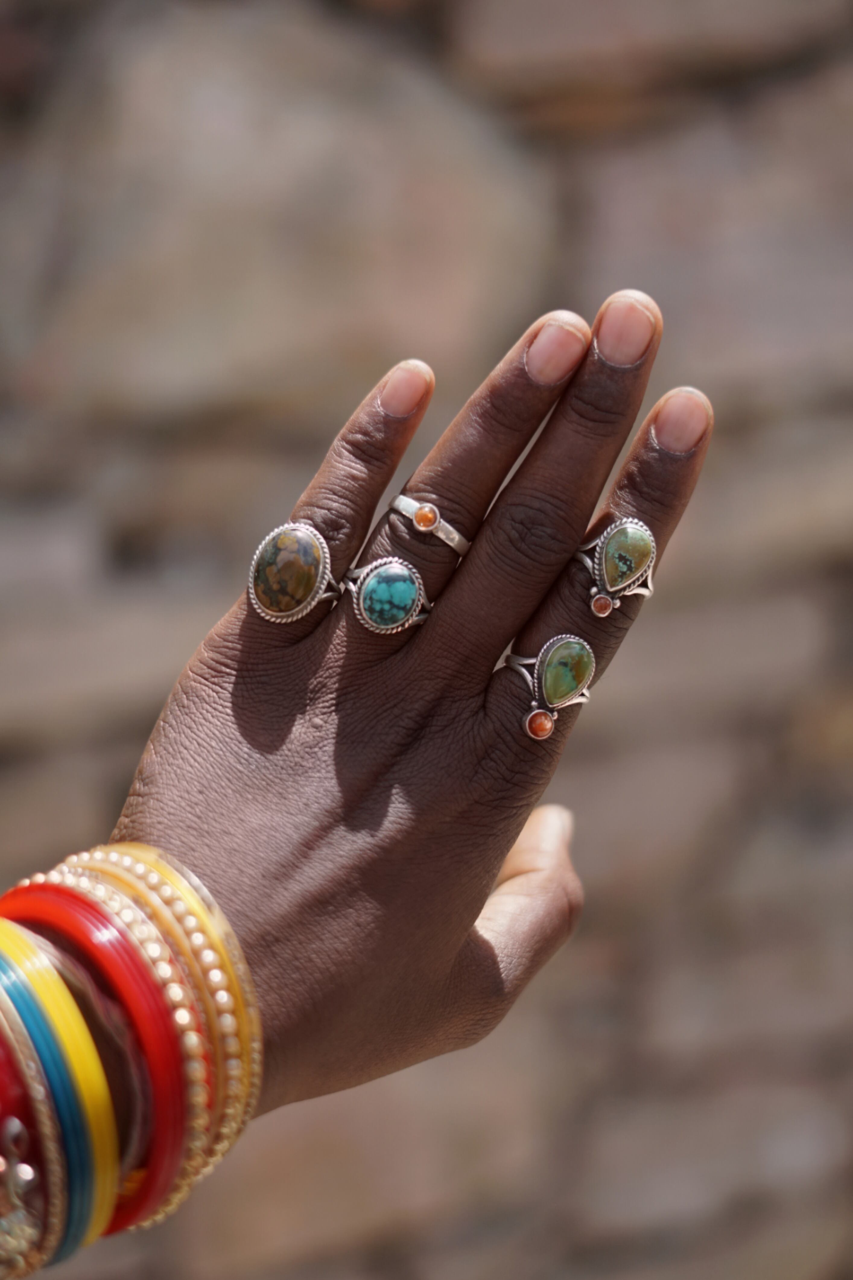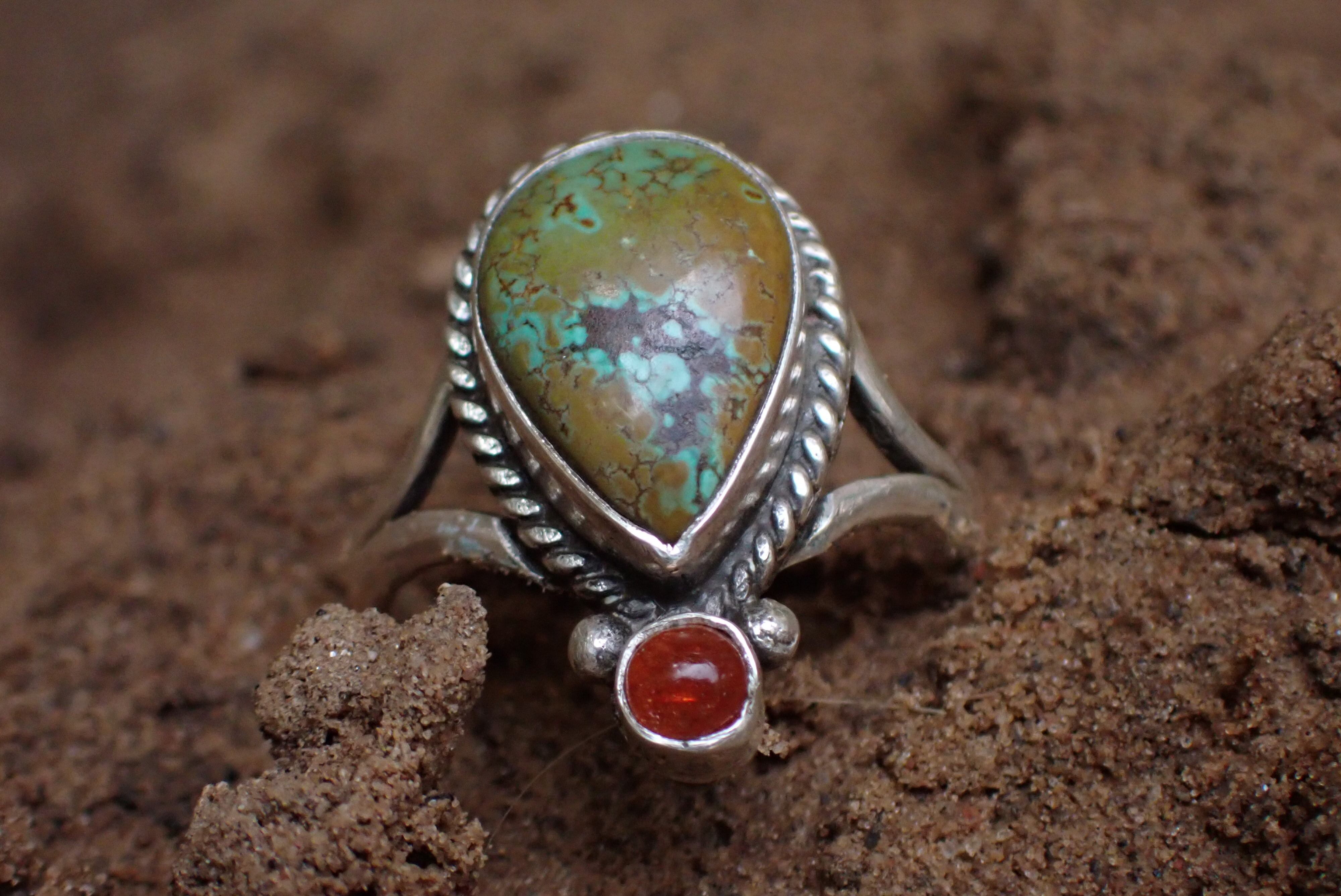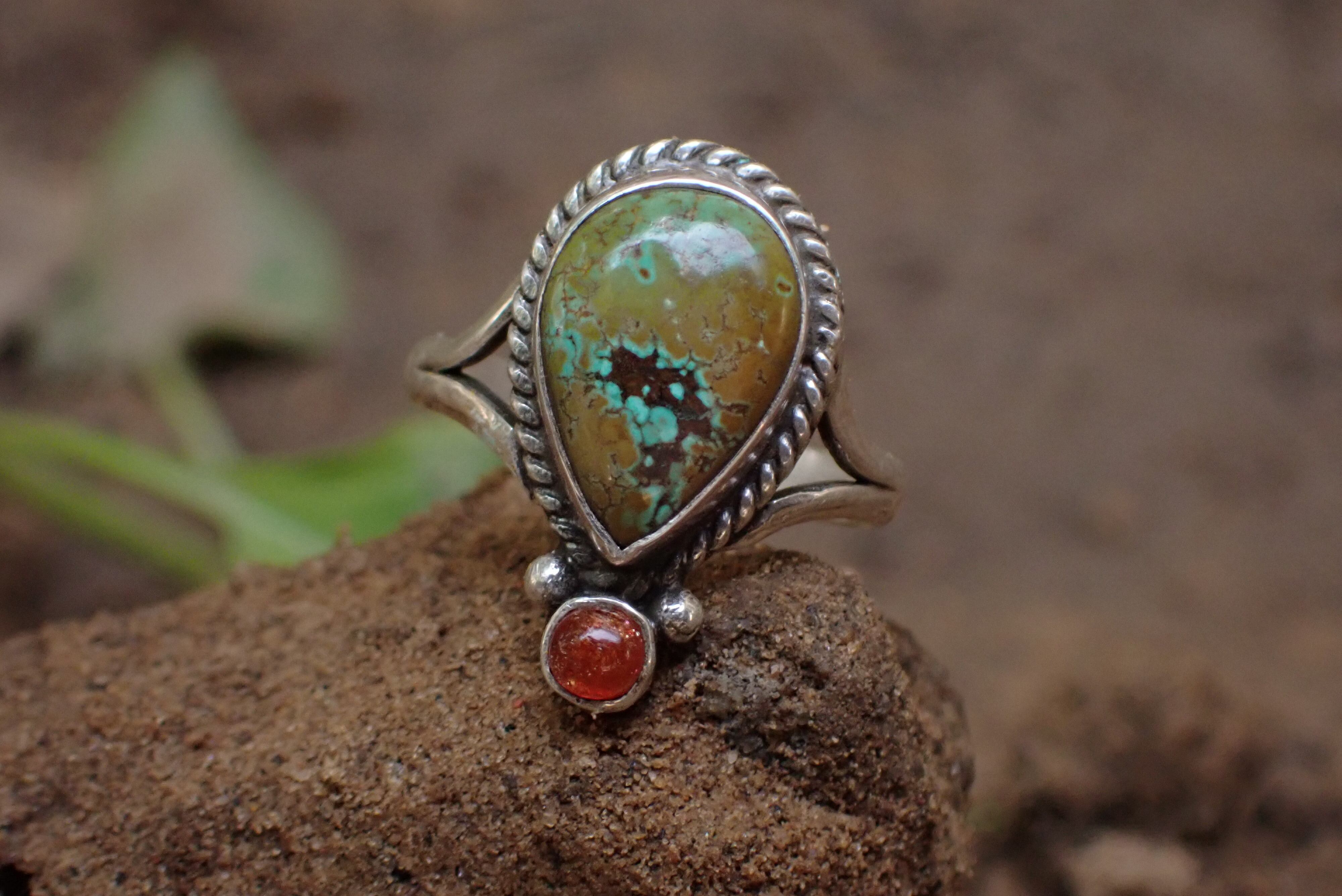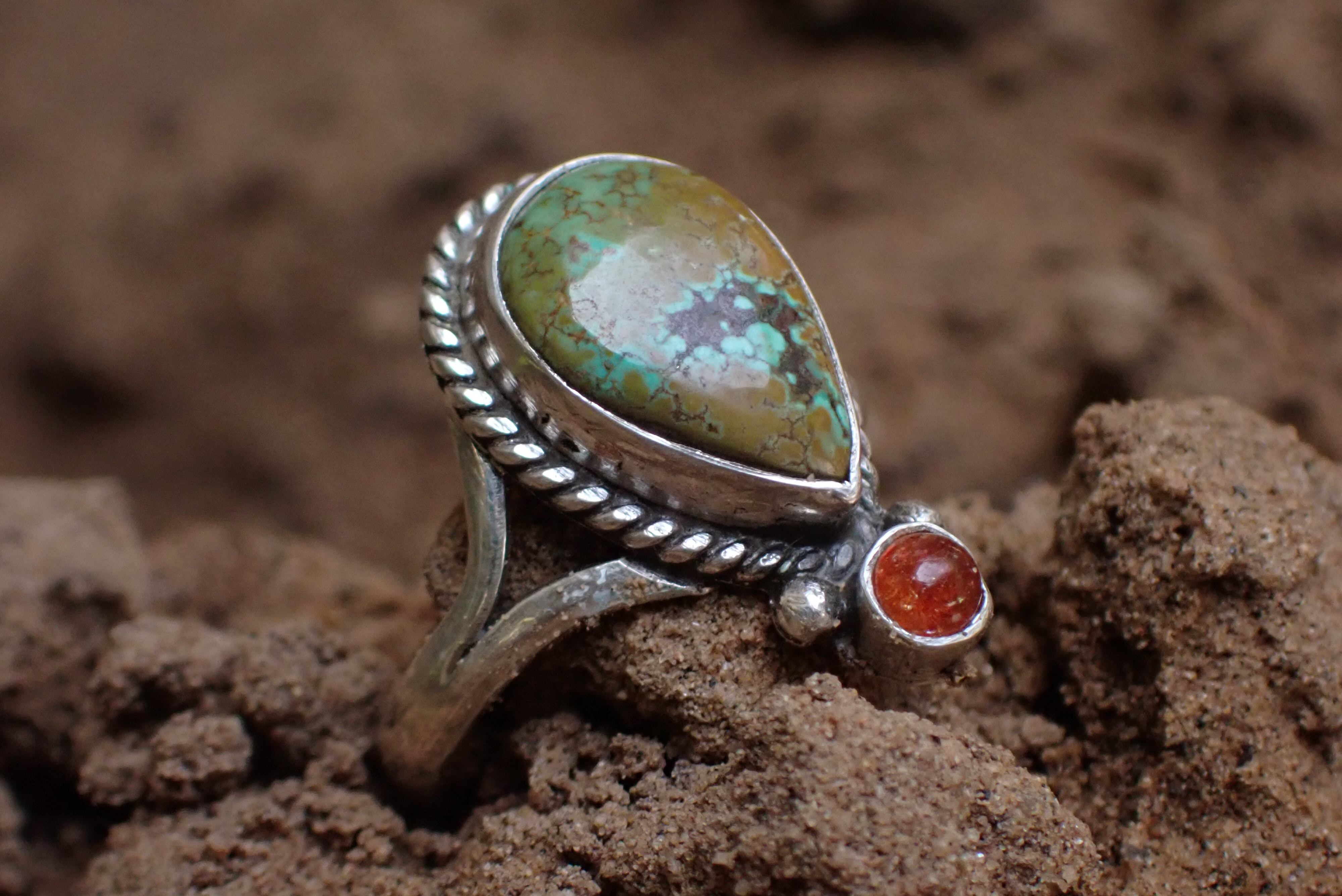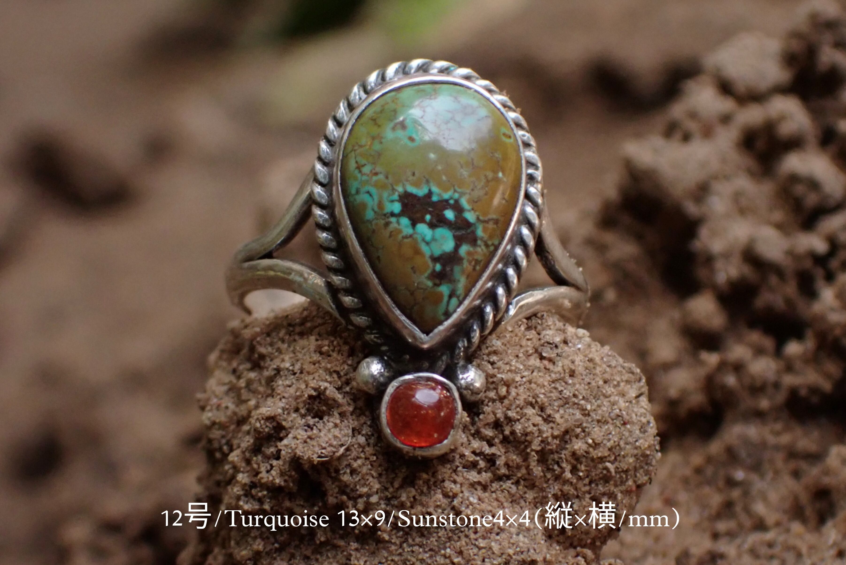 天然石サイズ / ターコイズ13mm × 9mm、サンストーン4mm×4mm