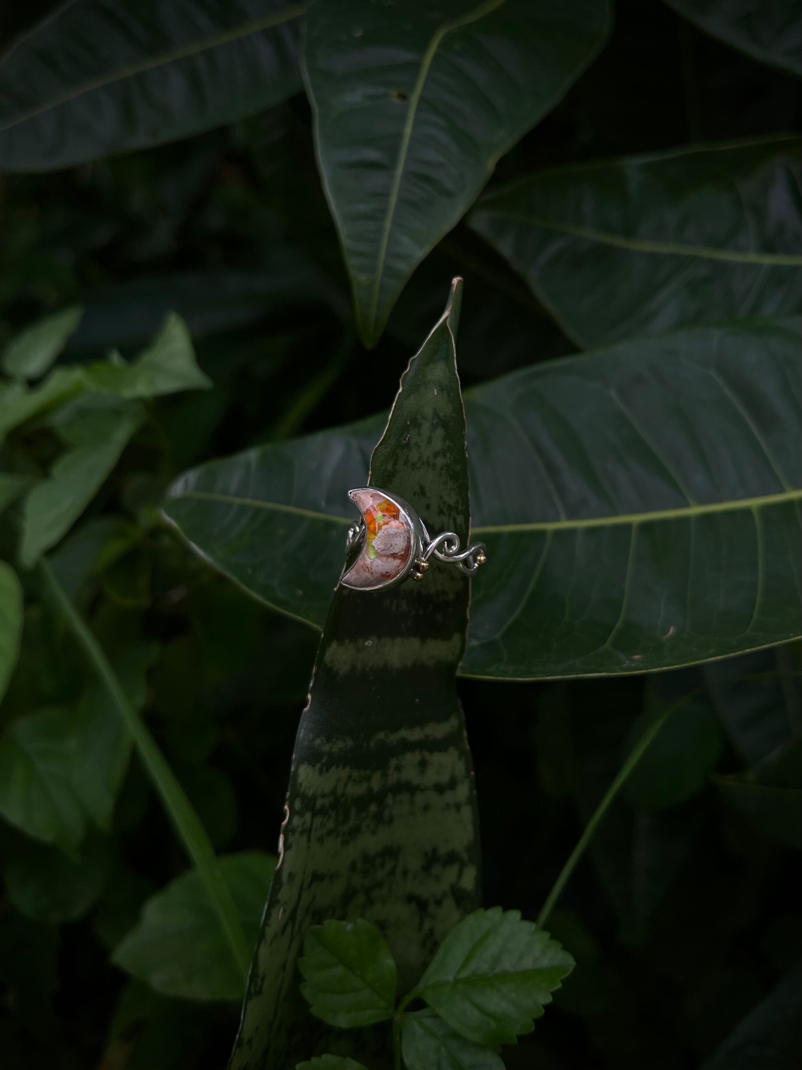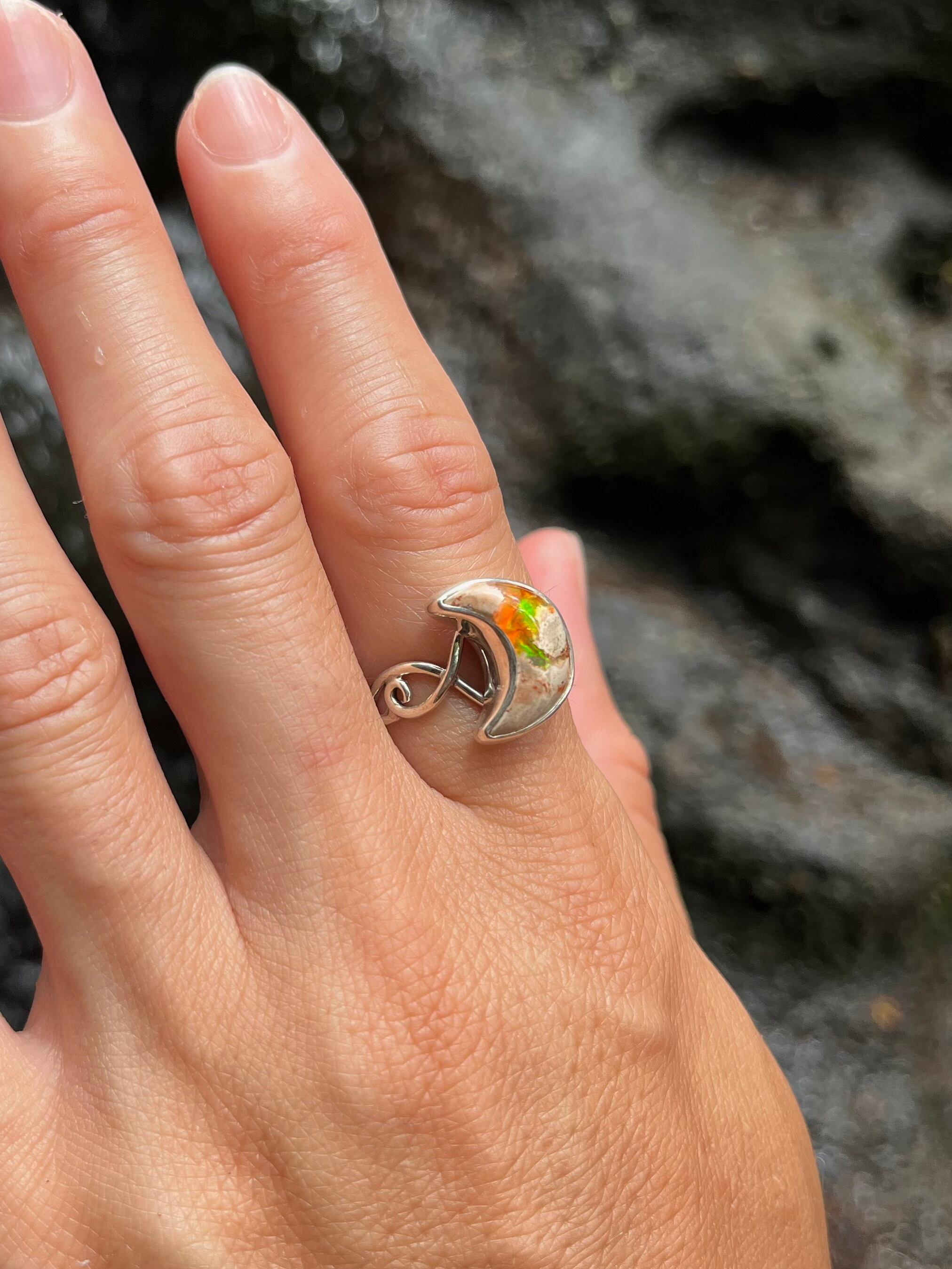 メキシコの鉱山にて直接仕入れたレアなお月さま形のオパールです。遊色が神秘的で美しいピースです。