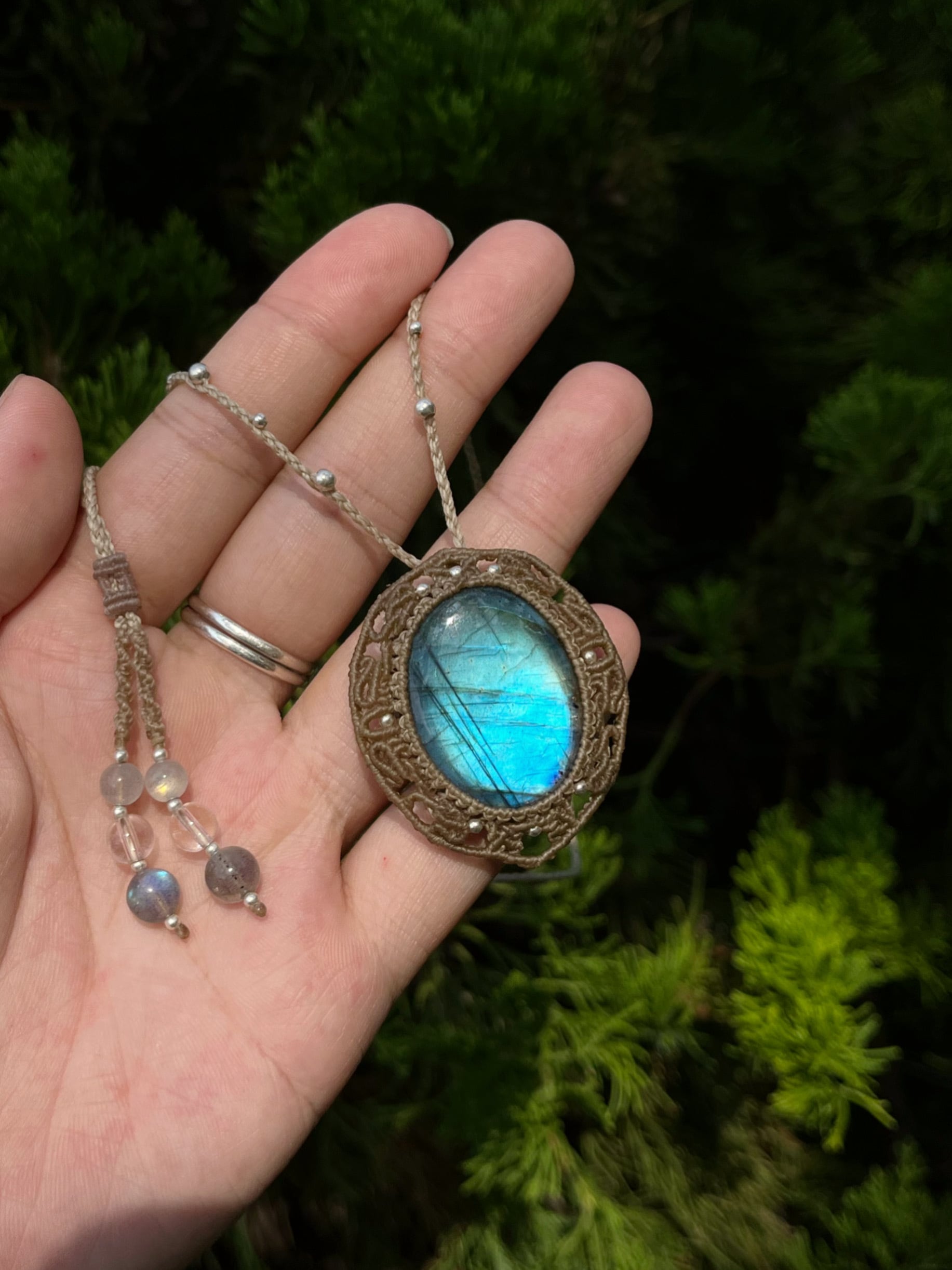 光の角度によって見られるブルーのシラーが神秘的で美しいラブラドライト。