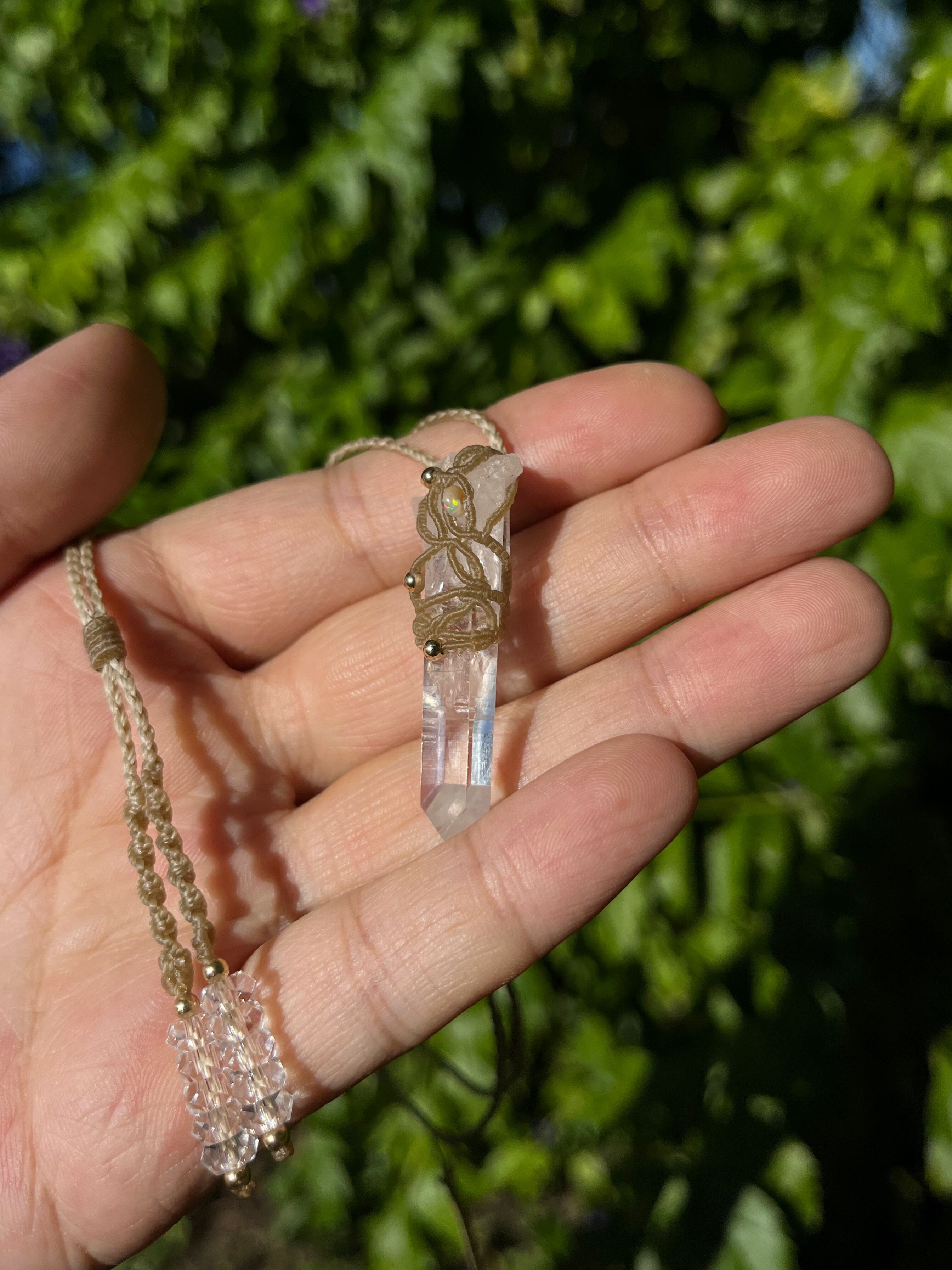 水晶の形にそって、その時のインスピレーションのままに手を動かし、瞑想するように編んでゆくこの時間がだいすきです。