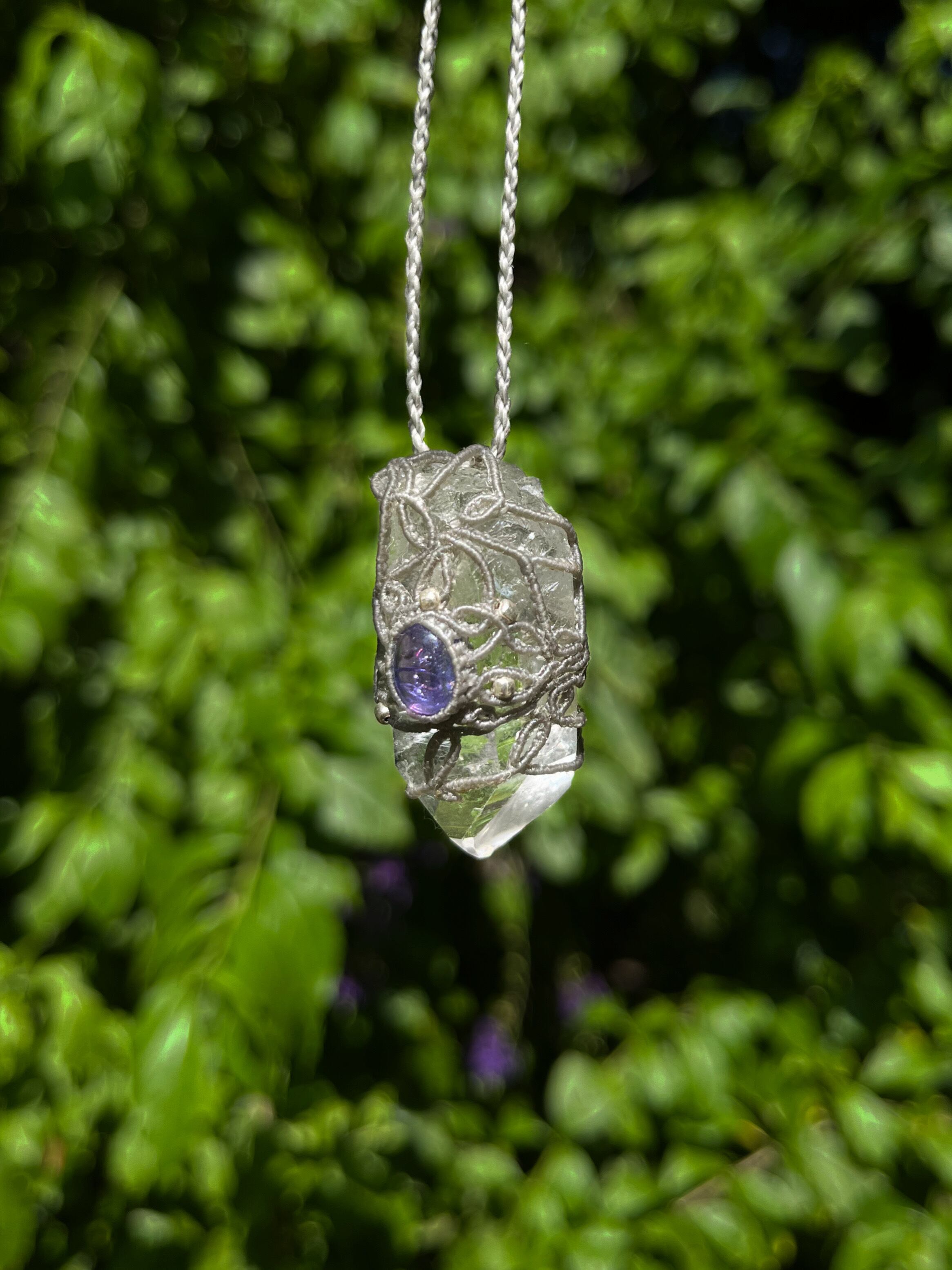 ヒマラヤ産のクリスタルクォーツと、タンザナイトを組み合わせた、落ち着いたエネルギーの作品。